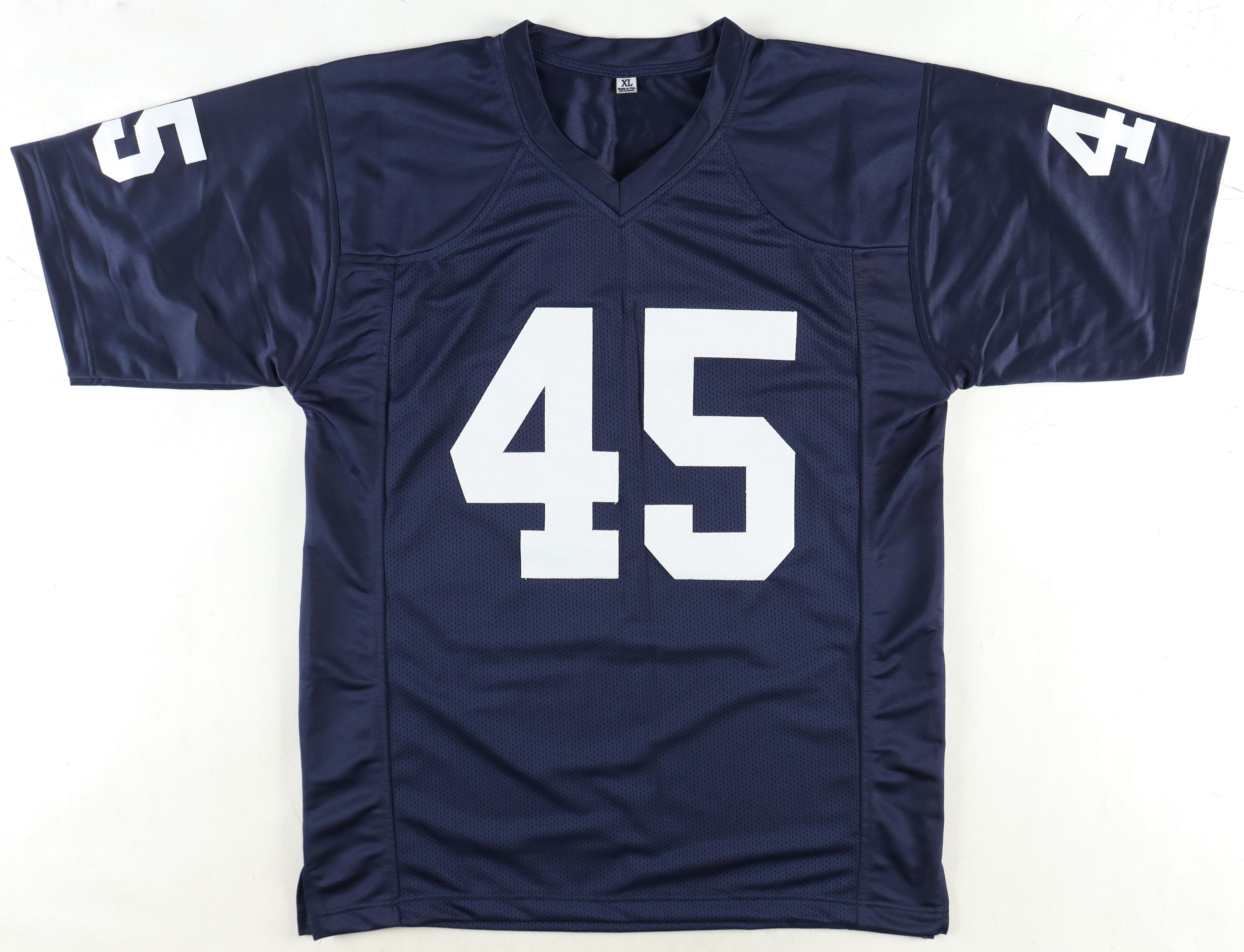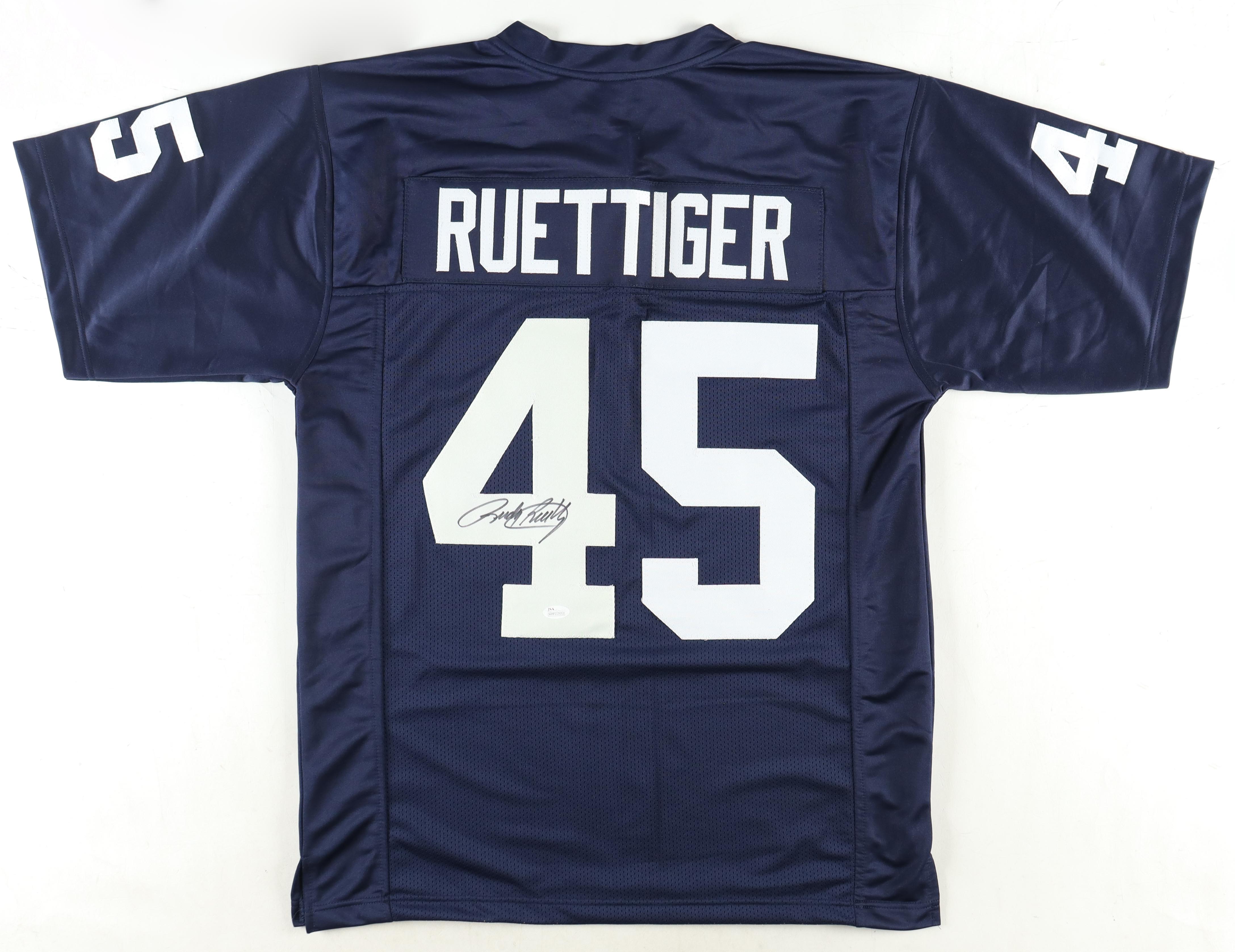 Custom jersey with everything sewn on, size XL. Hand-signed by Rudy Ruettiger.
