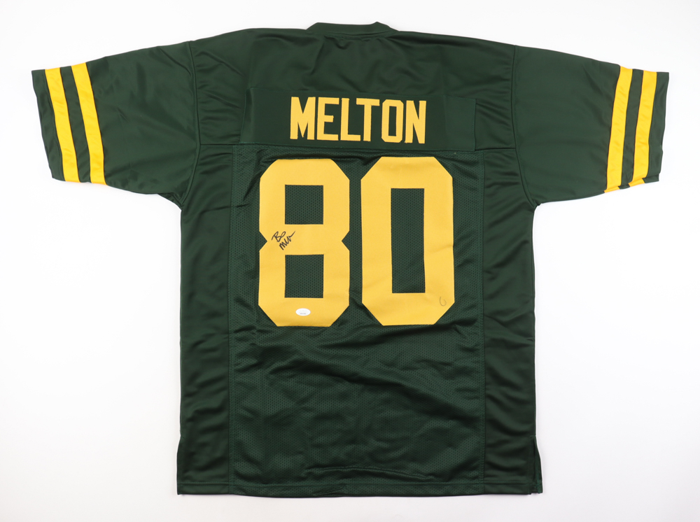 Custom jersey with everything sewn on, size XL. Hand-signed by Bo Melton.