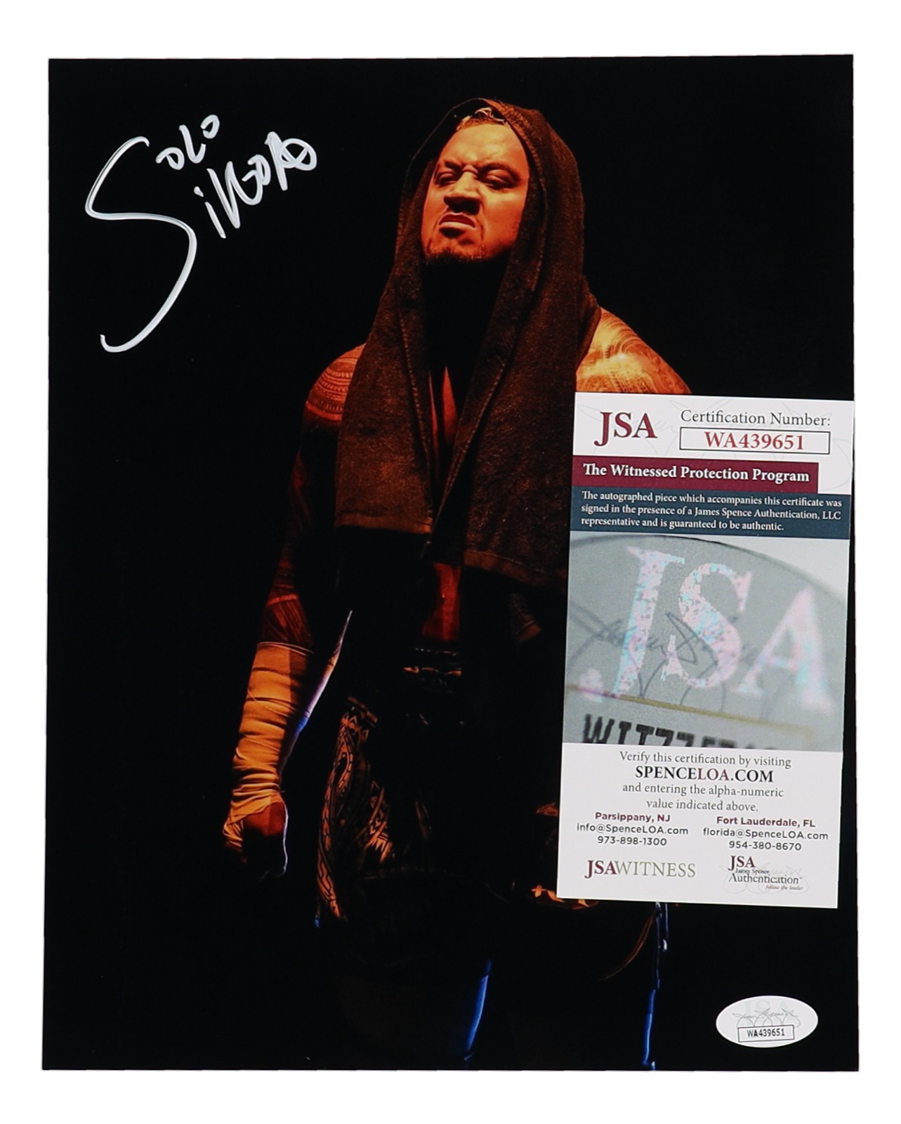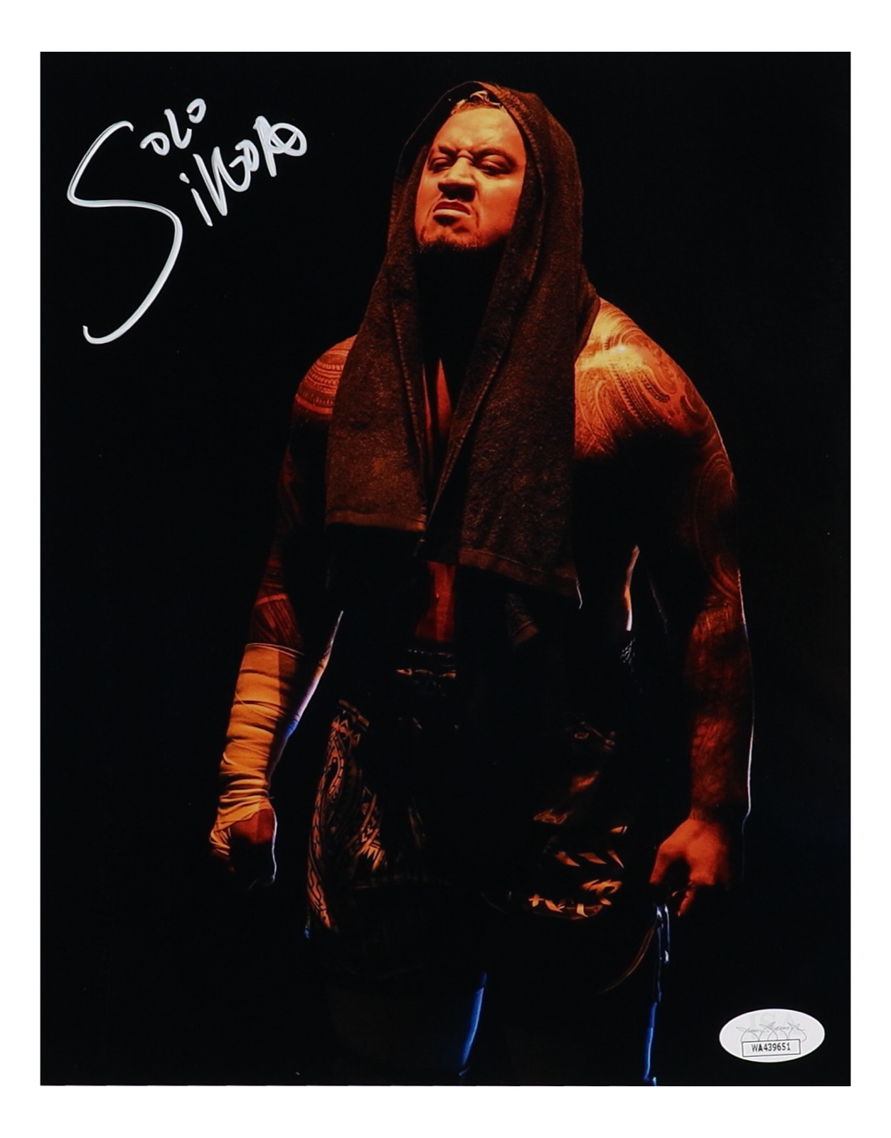 Photo measures 8" x 10" in size and has been hand-signed by Solo Sikoa.