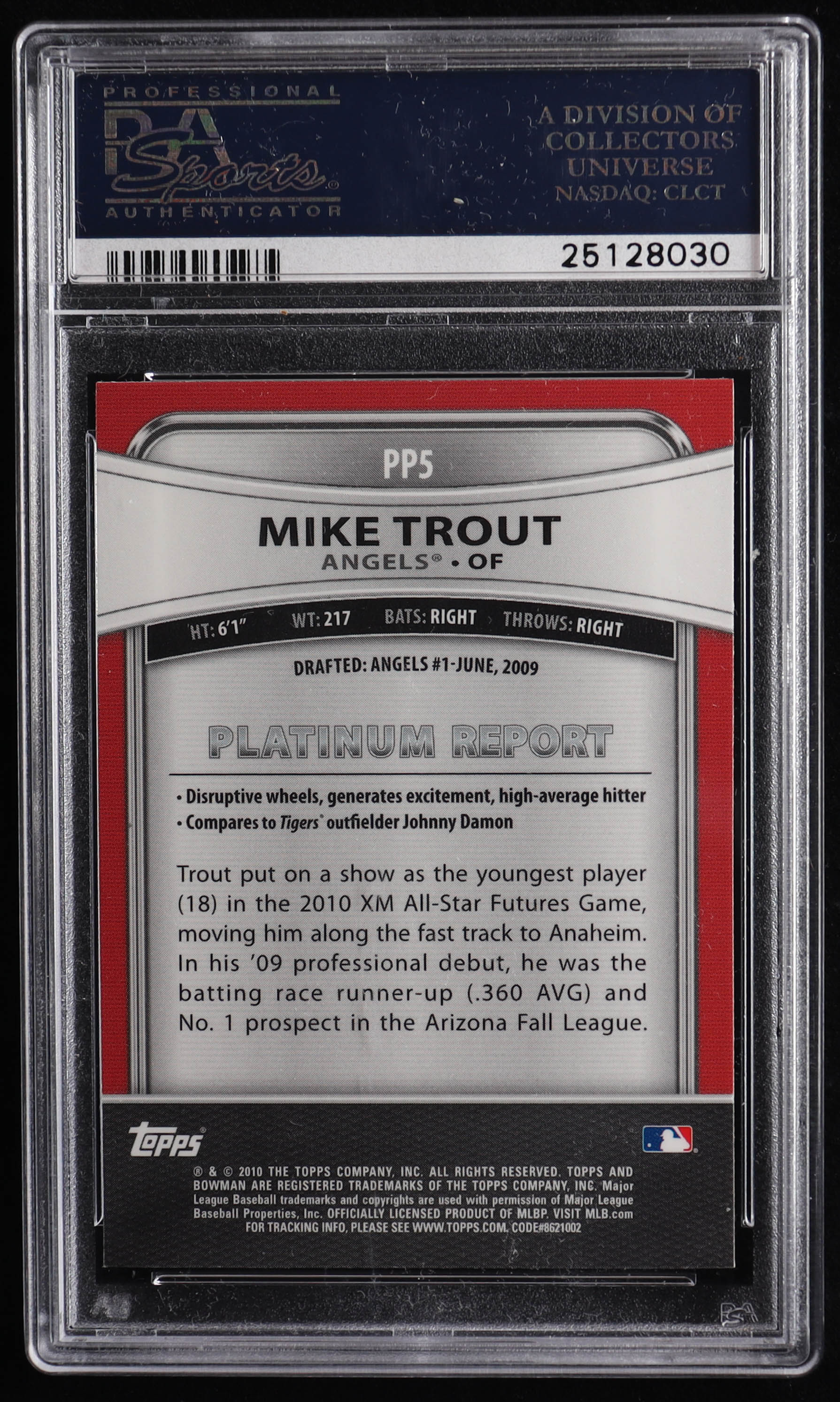 Mike Trout 2010 Bowman Platinum Prospects #PP5 RC (PSA 6)