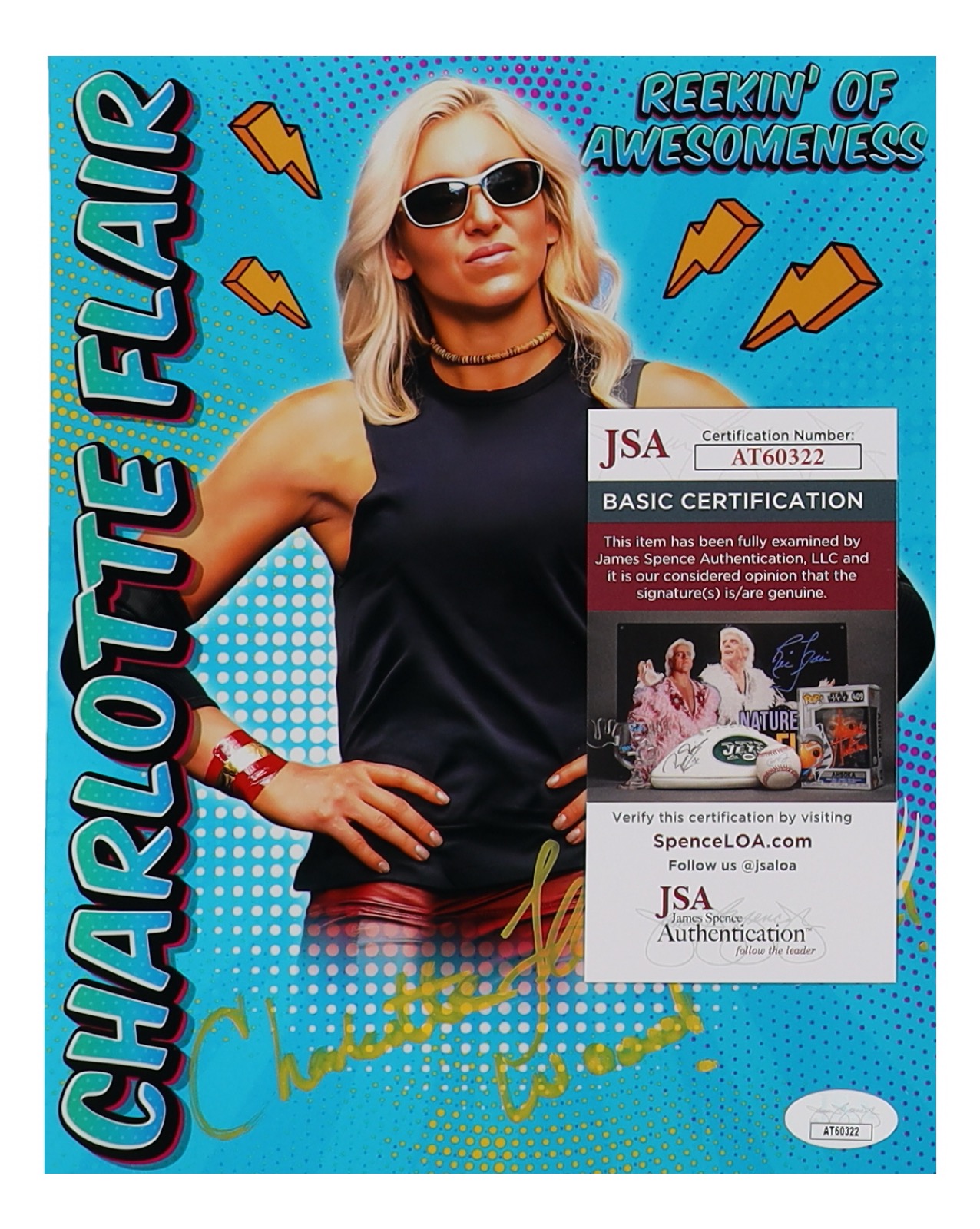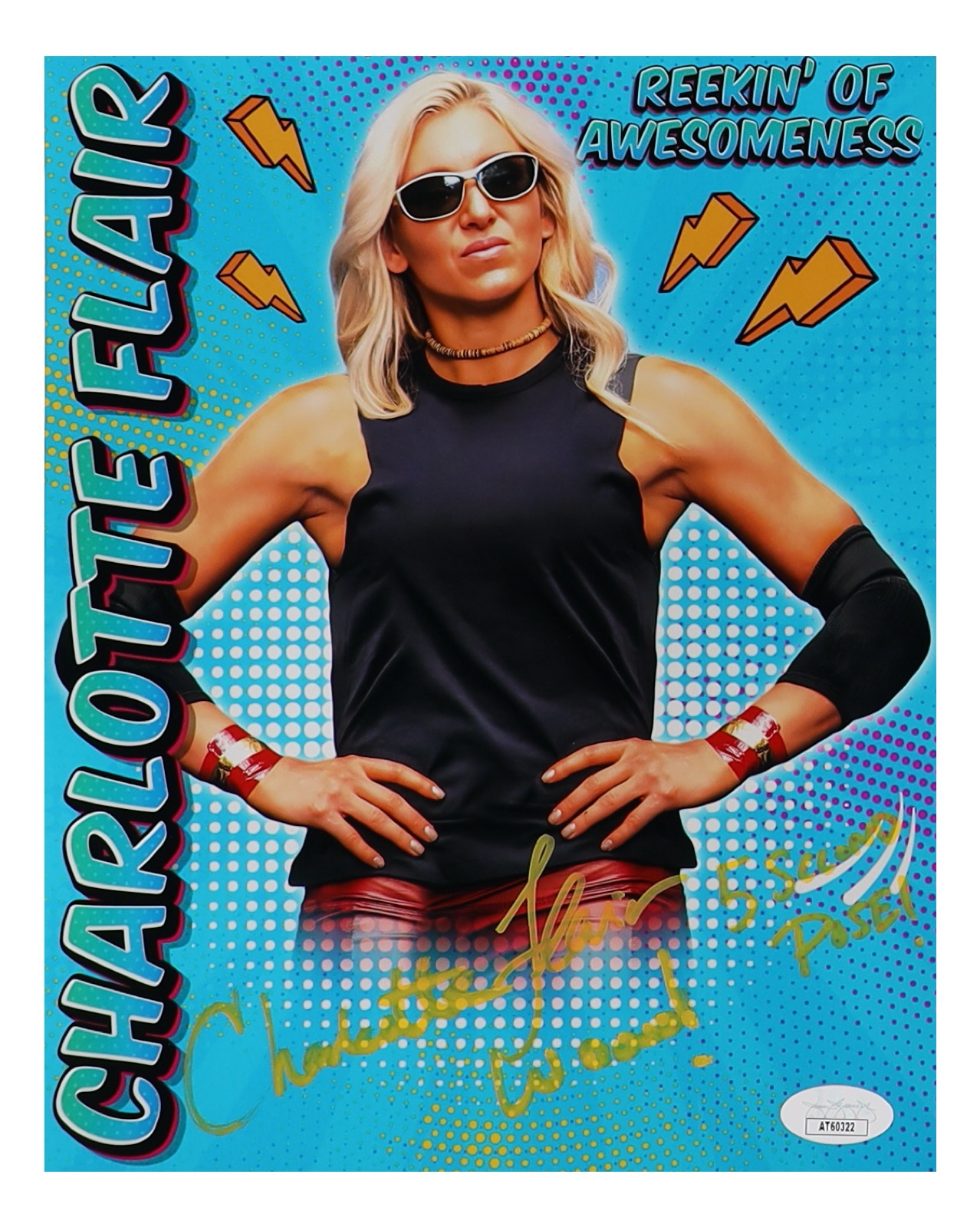 Charlotte Flair Signed WWE 8x10 Funhouse Metallic Photo Inscribed "Woooo!" & "5 Second Pose!" (JSA)