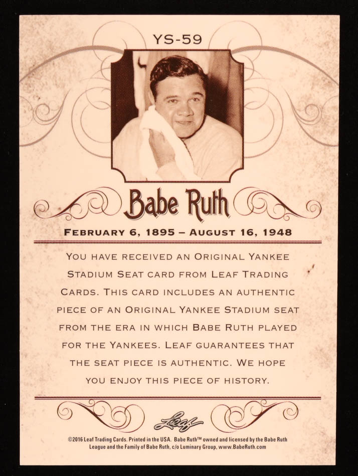 Babe Ruth 2016 Leaf Babe Ruth Collection Yankee Stadium Seat Silver #YS59