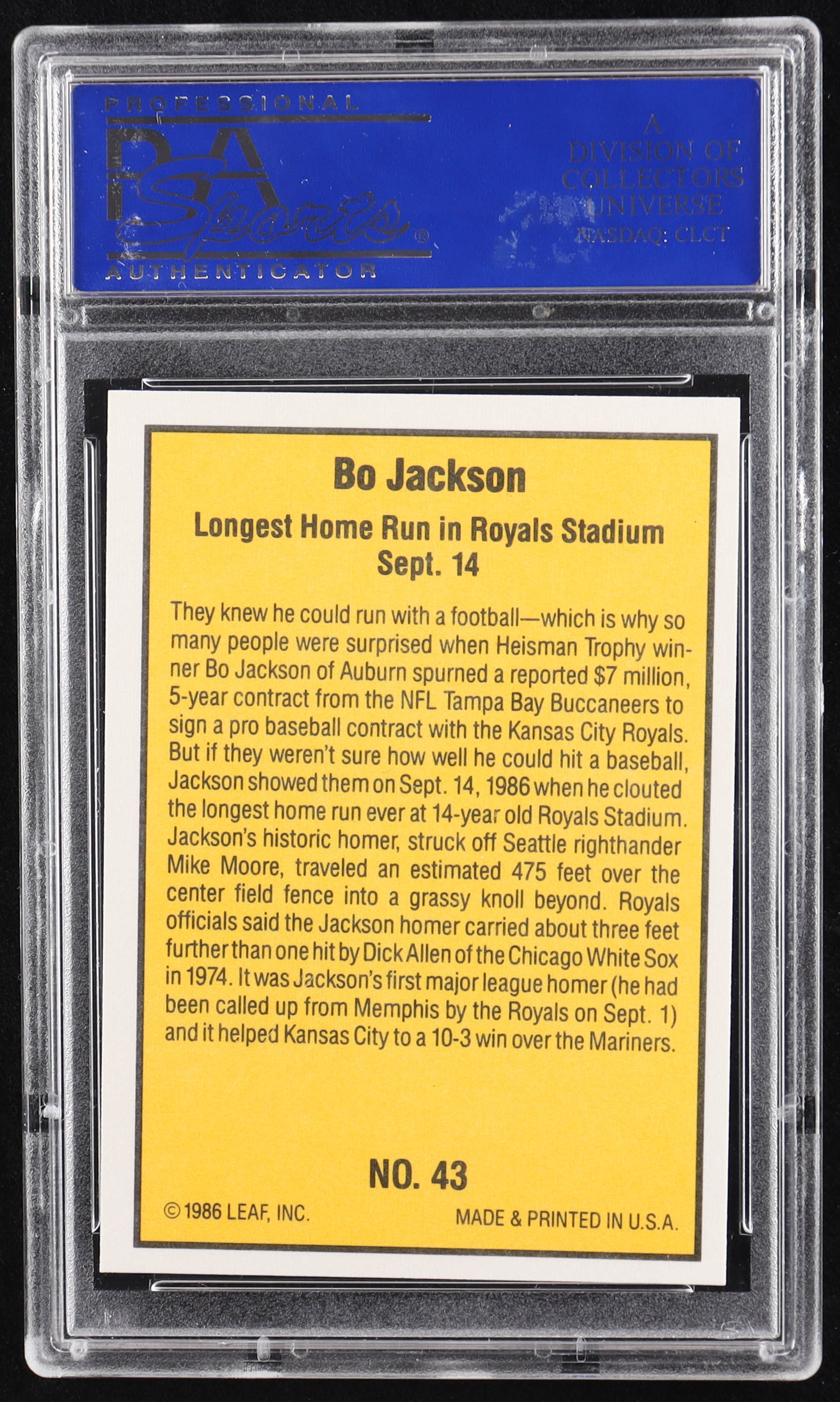 Bo Jackson 1986 Donruss Highlights #43 RC (PSA 10)