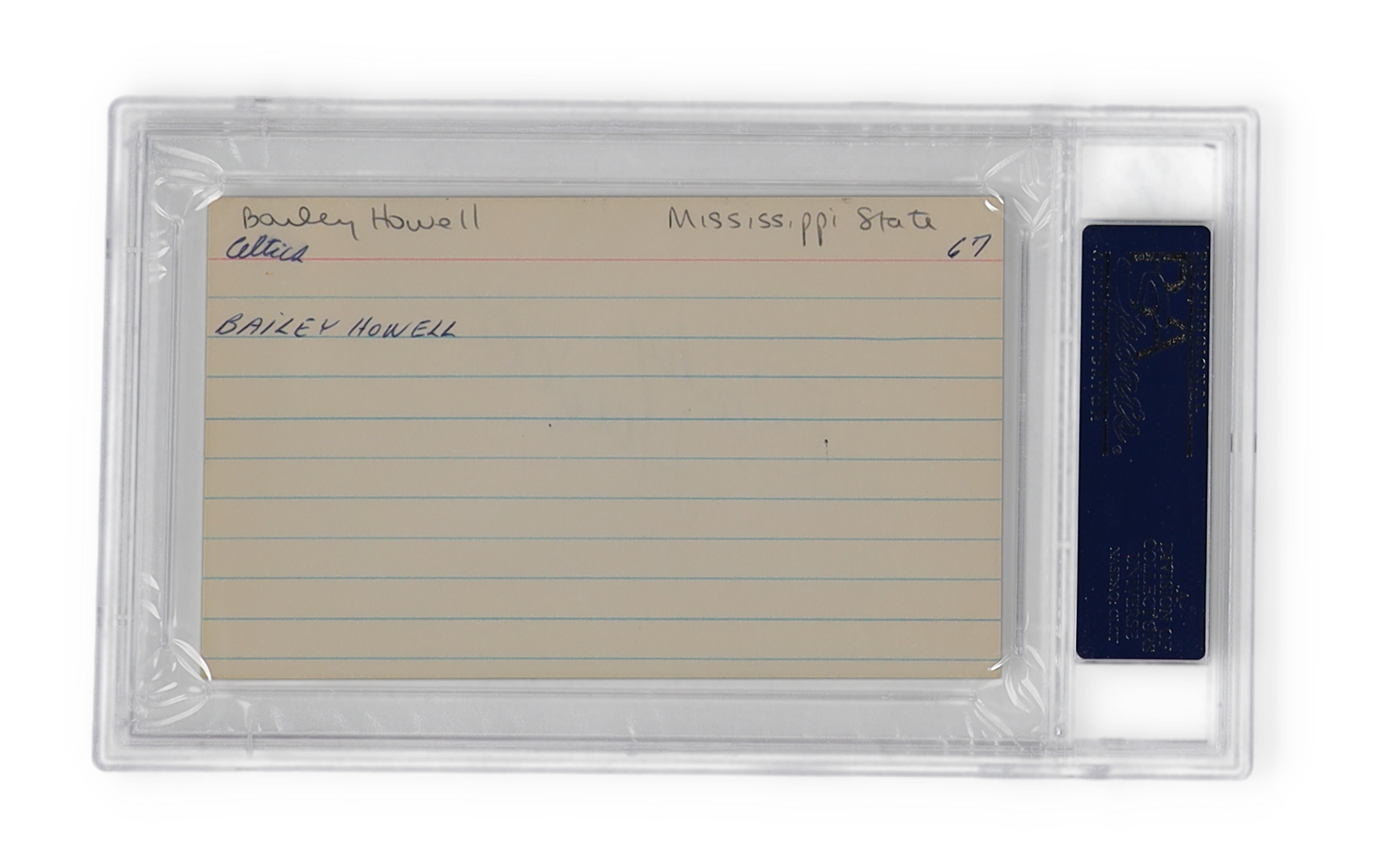 Index card measures 3" x 5" in size. Hand-signed by Bailey Howell (Boston Celtics, HOF)