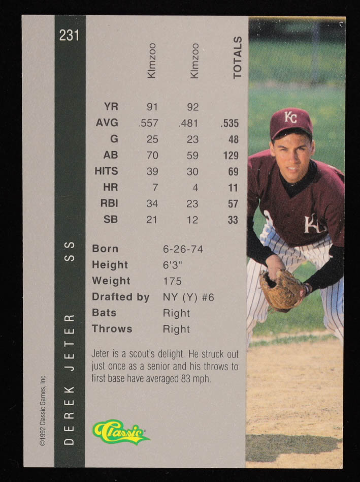 Derek Jeter 1992 Classic Four Sport #231 RC