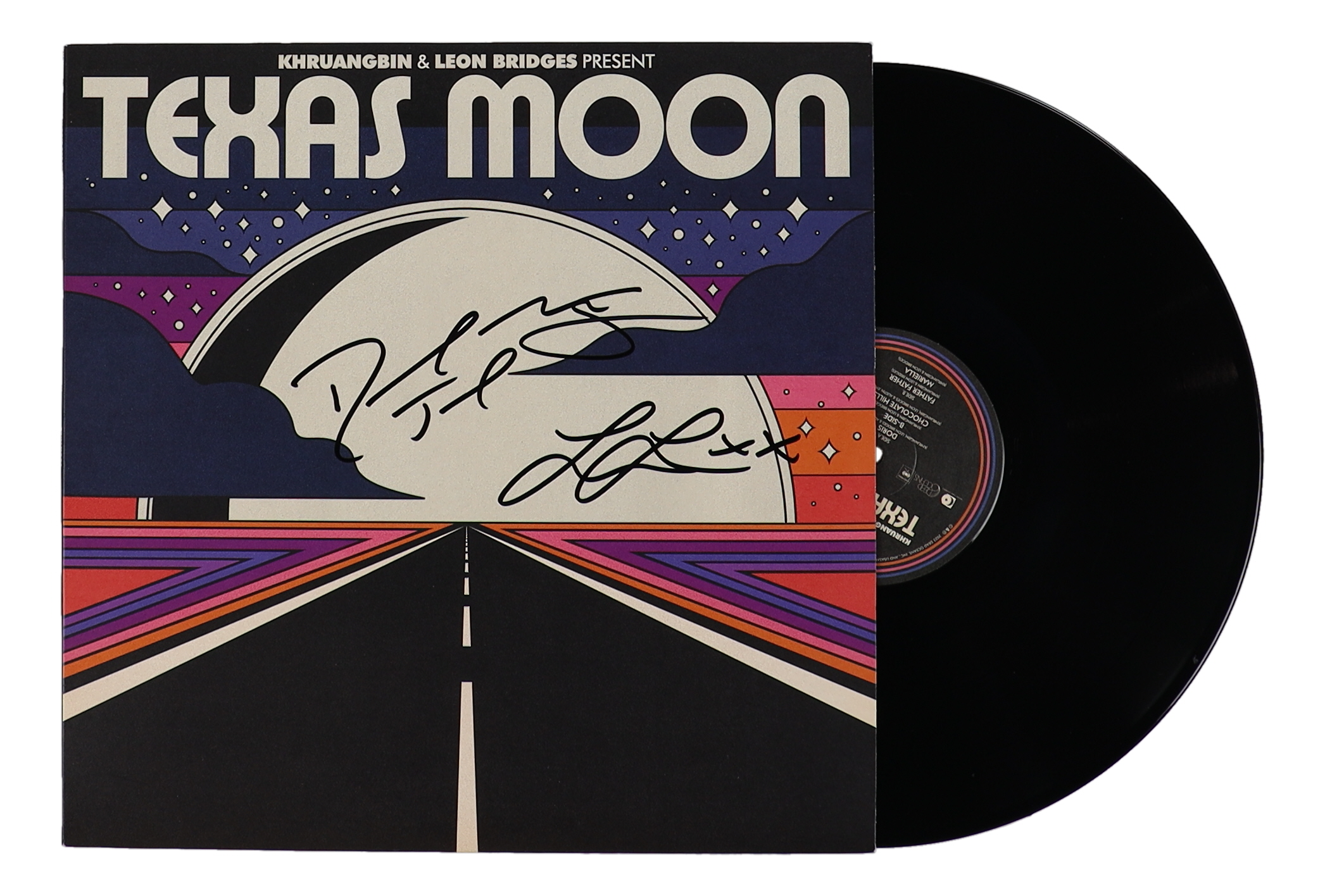 D.J. Johnson, Mark Speer & Laura Lee Signed Khruangbin & Leon Bridges "Texas Moon" Vinyl Record Album Cover (JSA)