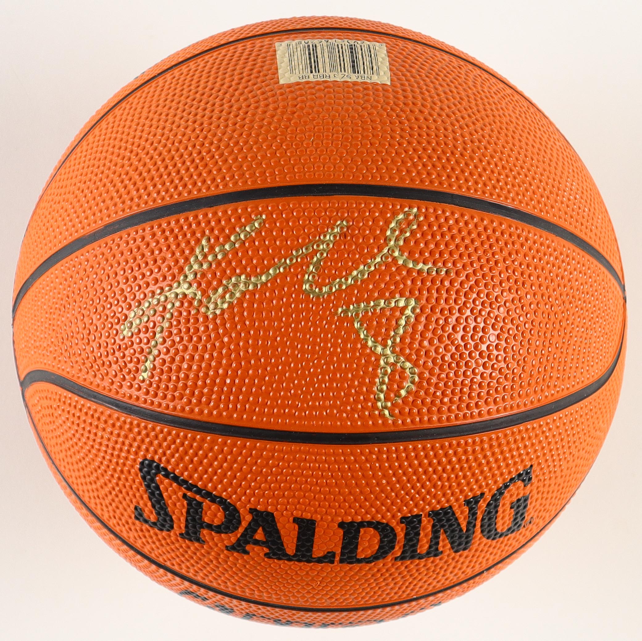 Spalding NBA mini basketball has been hand-signed by Los Angeles Lakers legend, Kobe Bryant! Bryant included with this signature his first jersey number "#8".