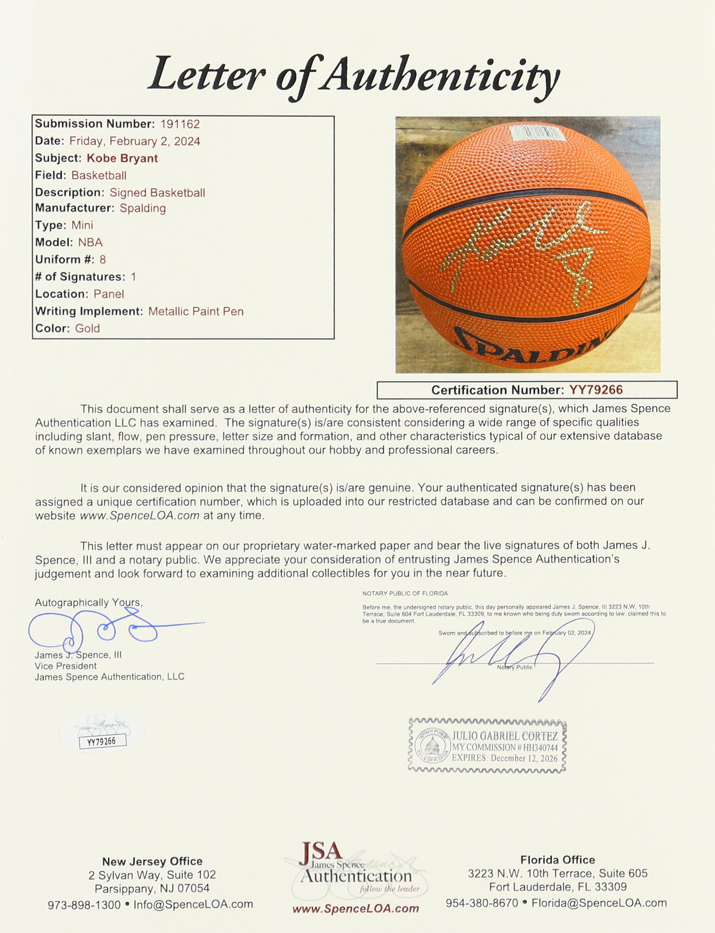 Kobe Bryant Signed NBA Mini Basketball Inscribed "8" (JSA LOA)
