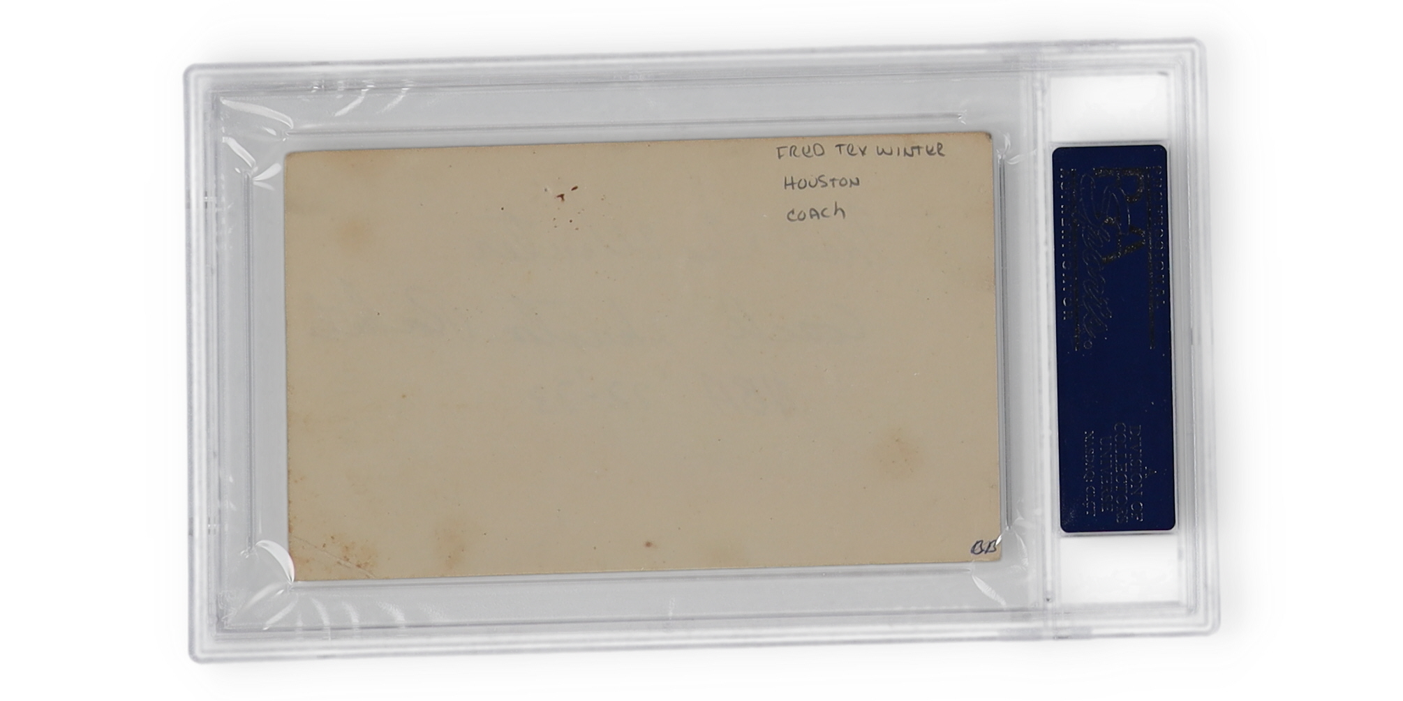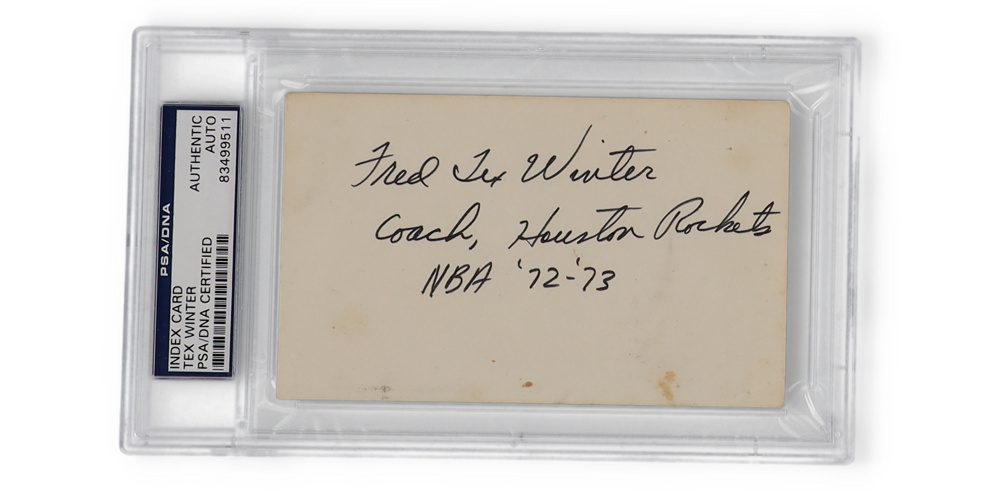 Fred "Tex" Winter Signed Index Card Inscribed "Coach, Houston Rockets" & "NBA '72-'73" (PSA)