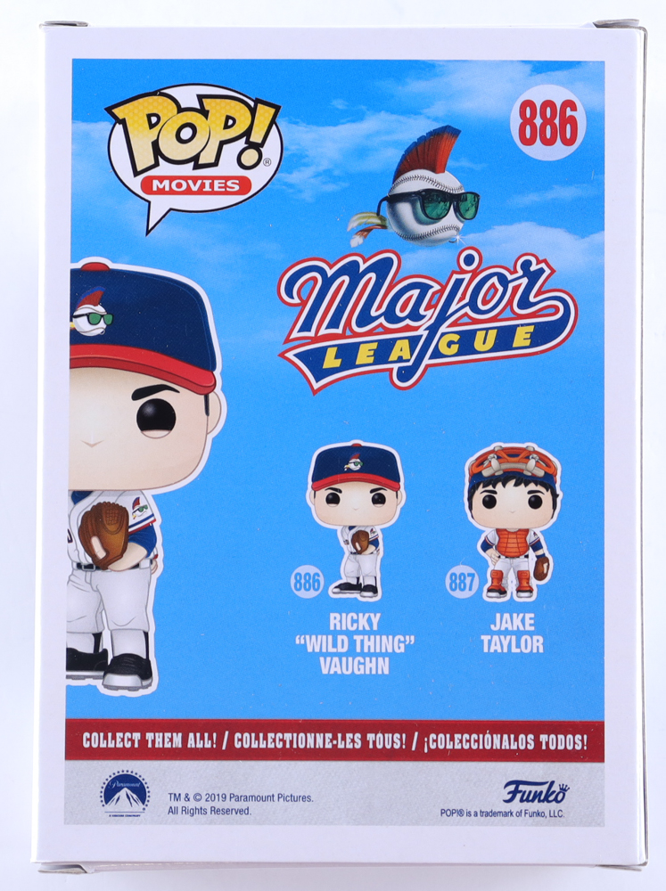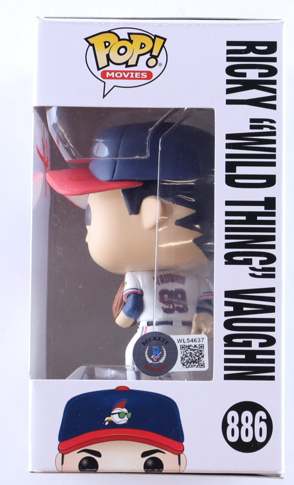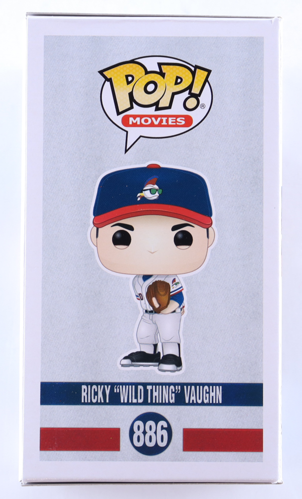 Vinyl figure measures approximately 4" tall. Hand-signed on the packaging by Charlie Sheen (Ricky 'Wild Thing' Vaughn).