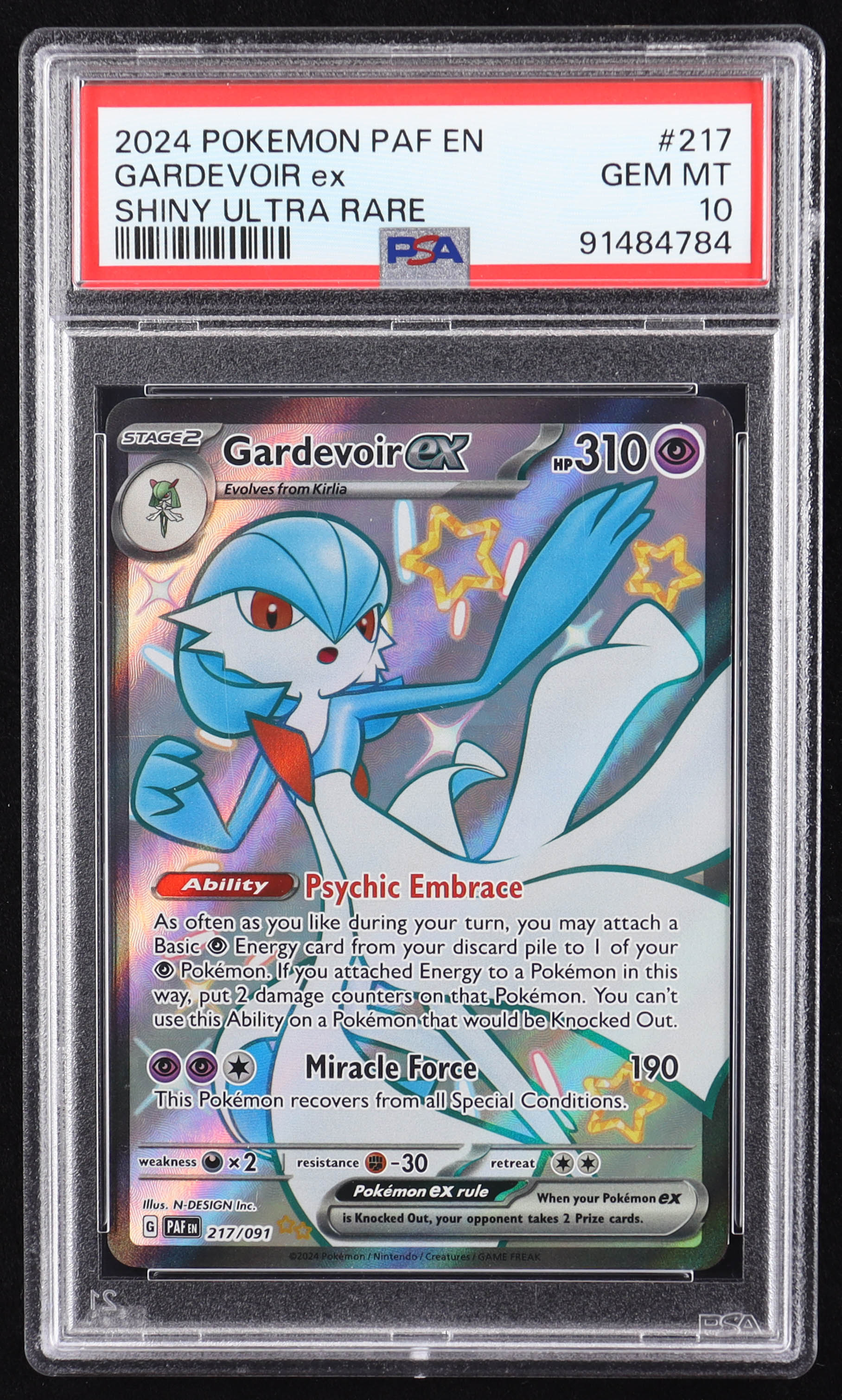 Gardevoir EX 2024 Pokemon Scarlet and Violet Paldean Fates #217 (PSA 10)