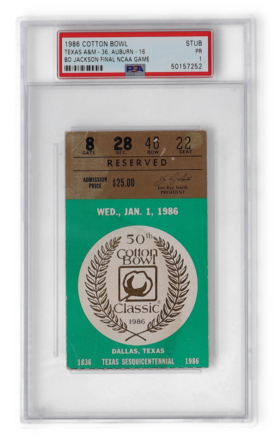Bo Jackson Final NCAA Game | 1986 Cotton Bowl Ticket Stub (PSA)