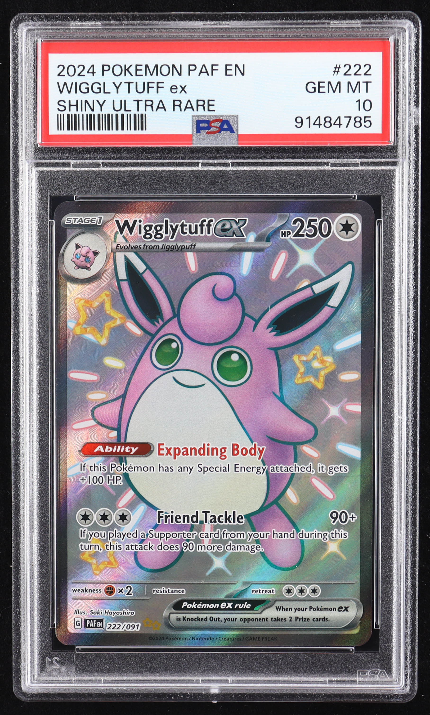 Wigglytuff EX 2024 Pokemon Scarlet and Violet Paldean Fates #222 (PSA 10)