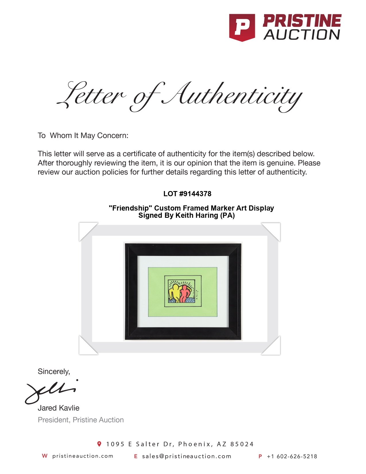 "Friendship" Custom Framed Marker Art Display Signed By Keith Haring (PA)