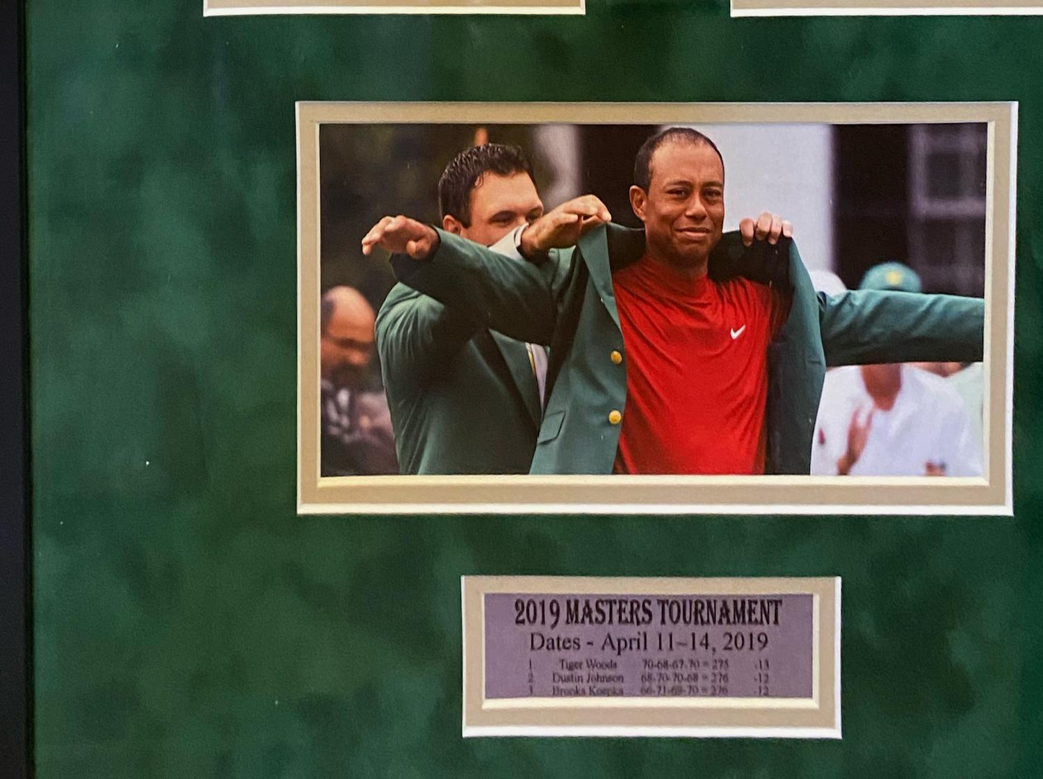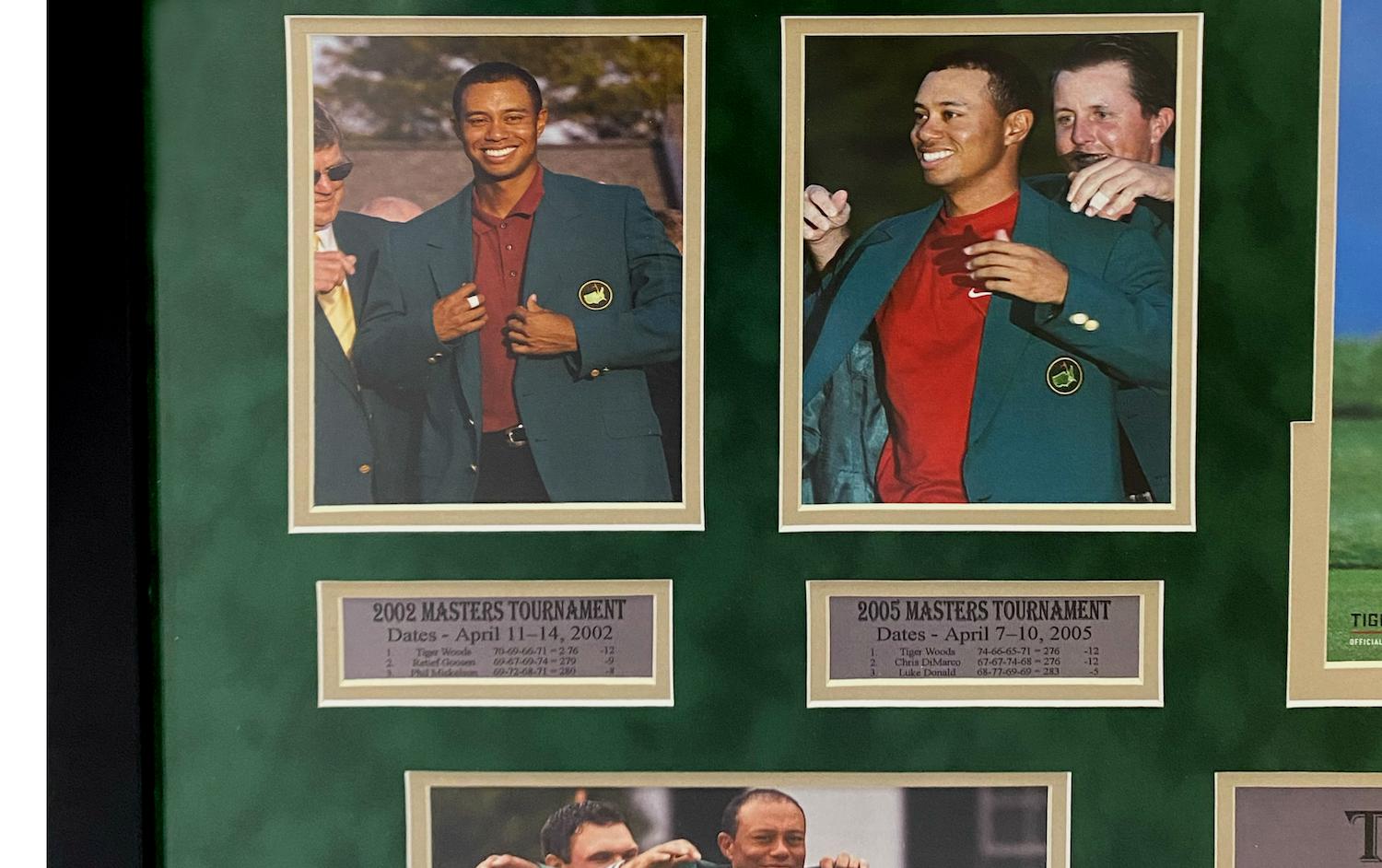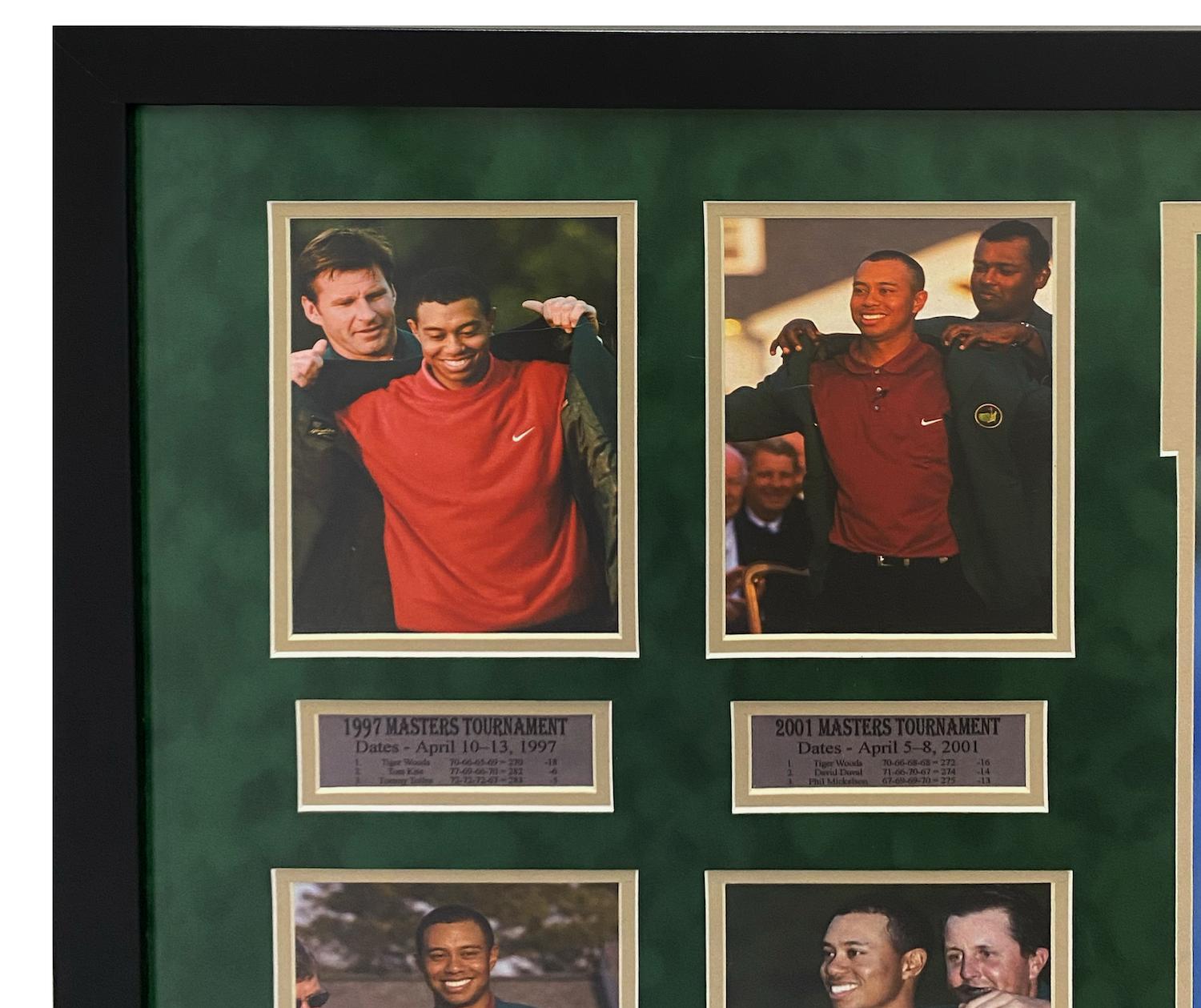 Custom frame measures 34" x 35" in size and features a "Fist Pump" photo that has been hand-signed by Tiger Woods.