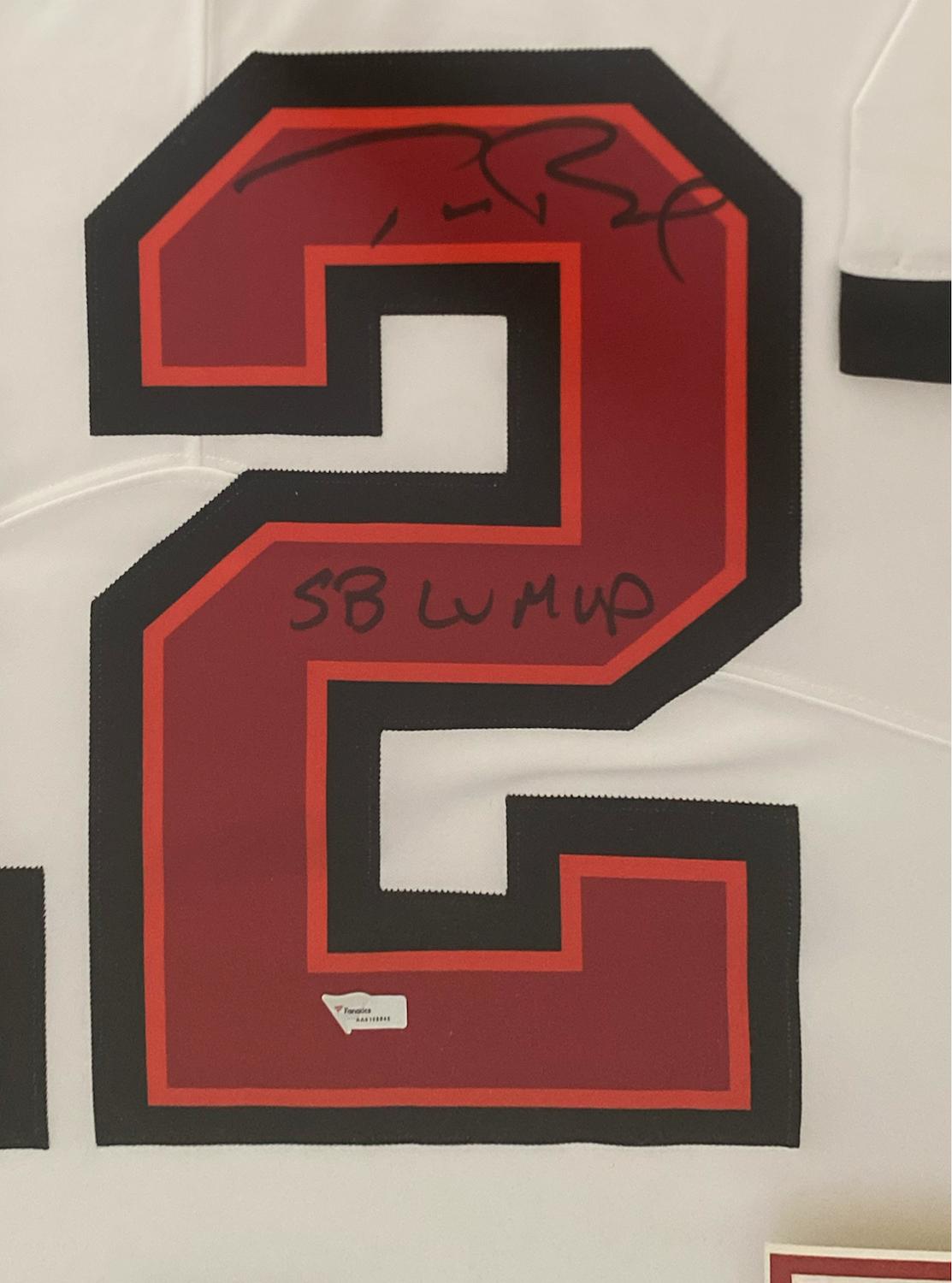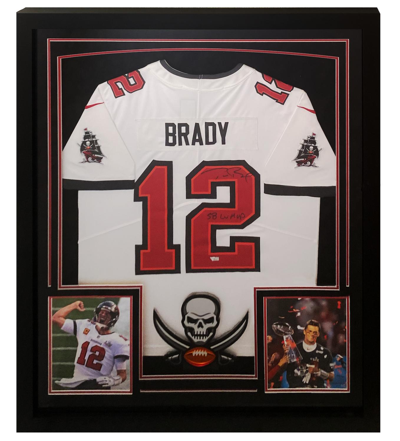 Tom Brady Signed Buccaneers Custom Framed Nike Jersey Inscribed "SB LV MVP" (Fanatics)