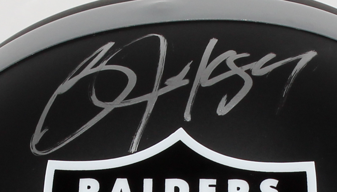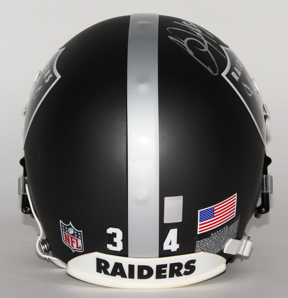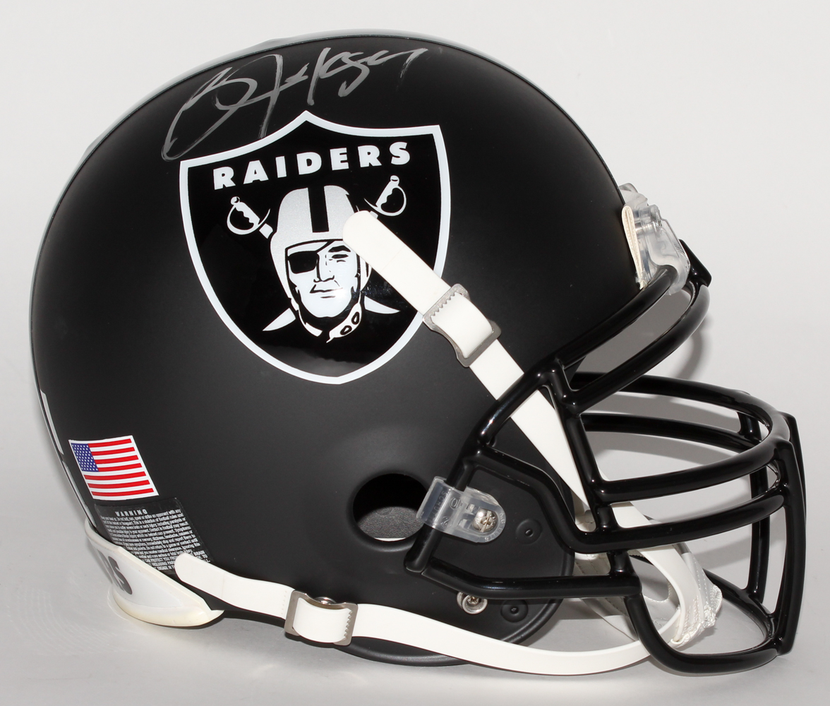 Custom Matte Black full-size authentic proline helmet. Hand-signed in silver paint pen by Bo Jackson (Raiders).
