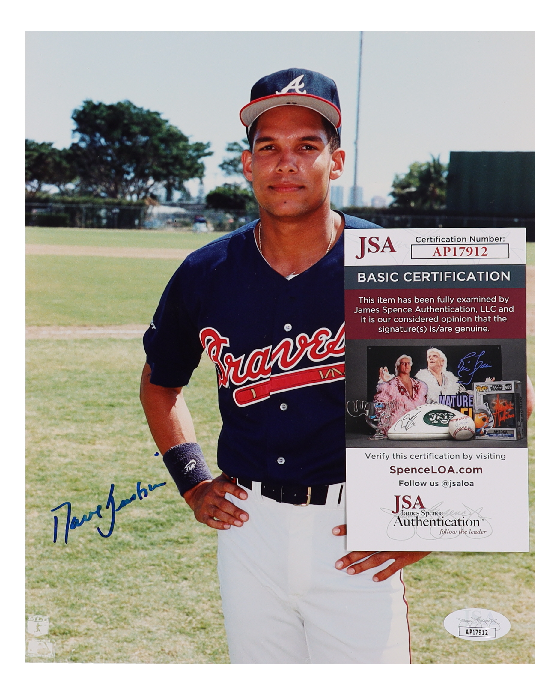 Photo measures 8" x 10" in size and has been hand-signed by David Justice (Atlanta Braves).