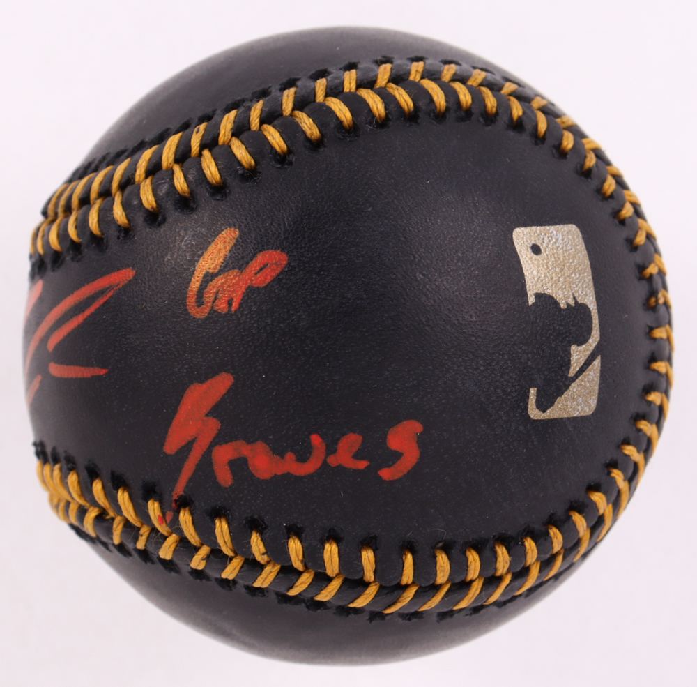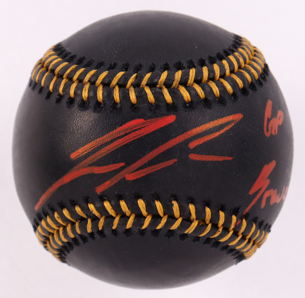 Rawlings Official Major League Black Leather Baseball. Baseball has been hand-signed and inscribed by Ronald Acuna Jr. (Atlanta Braves). Please see photos for details regarding the condition of the ball.