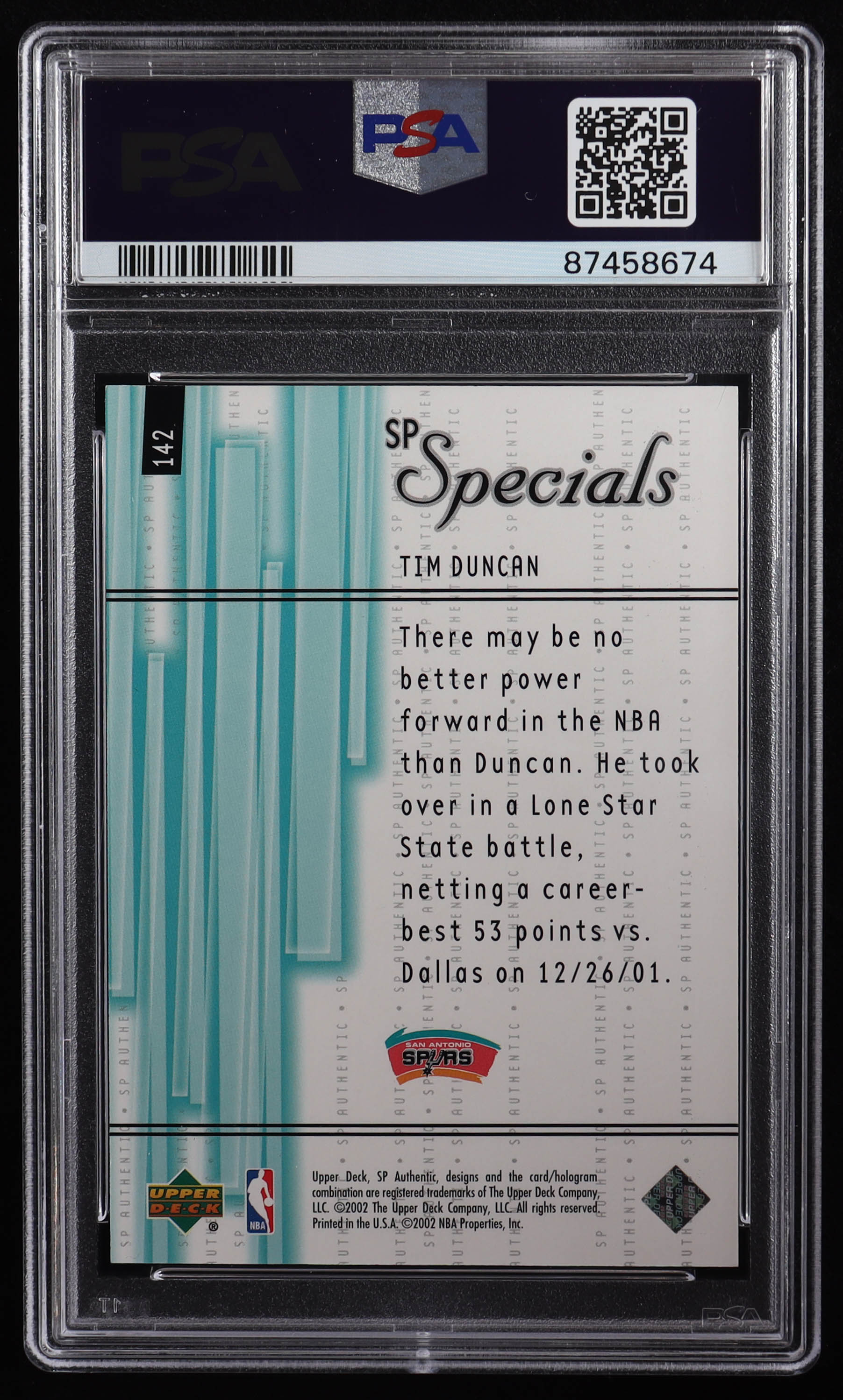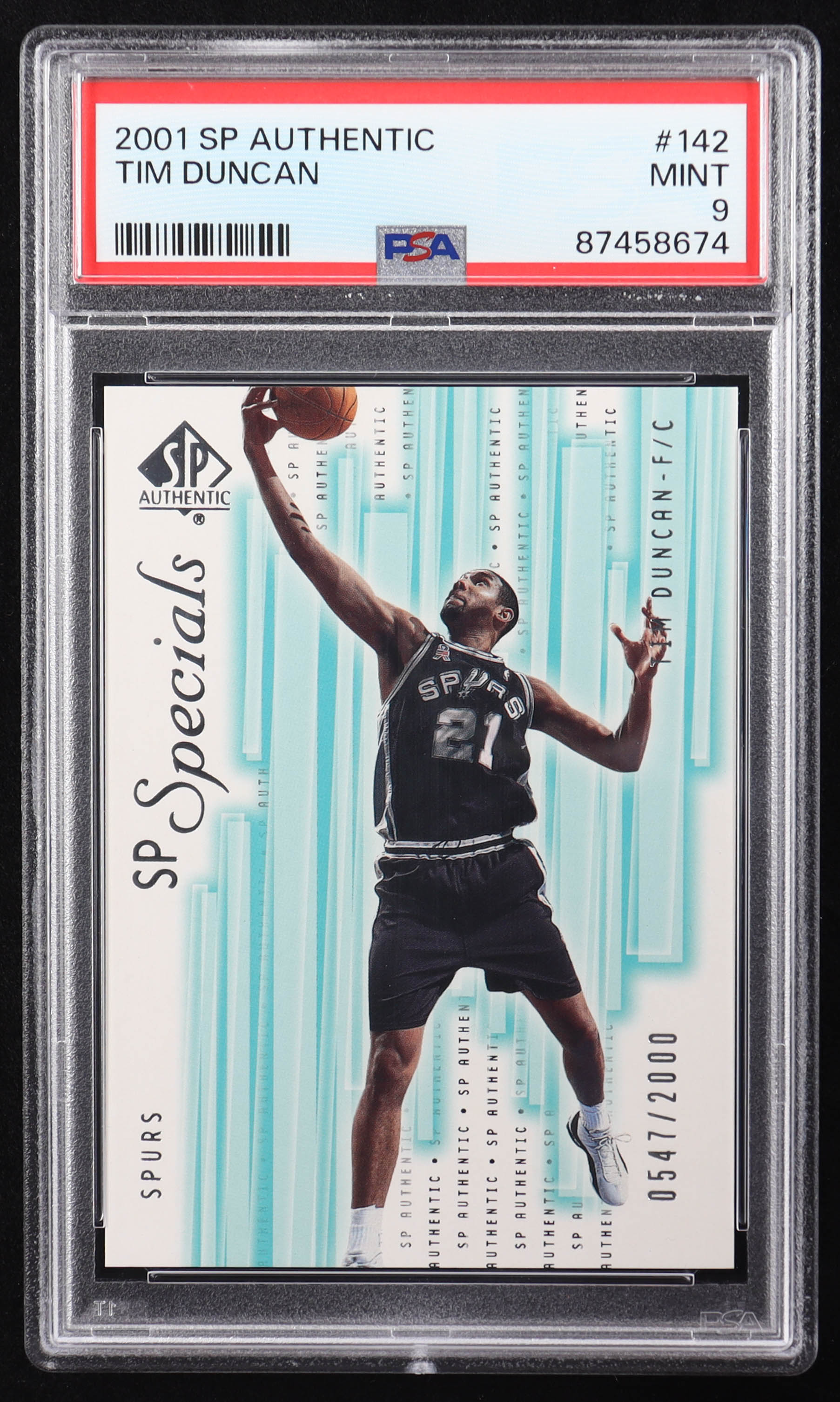 Tim Duncan 2001-02 SP Authentic #142 SPEC #547/2000 (PSA 9)