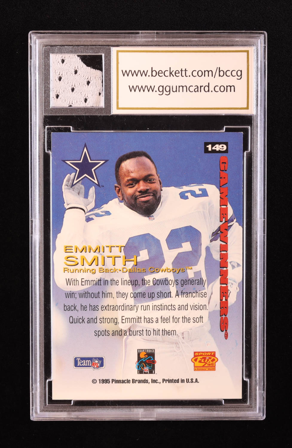 Emmitt Smith 1995 Sportflix #149 GW with Game-Used Jersey Piece (BCCG 10)