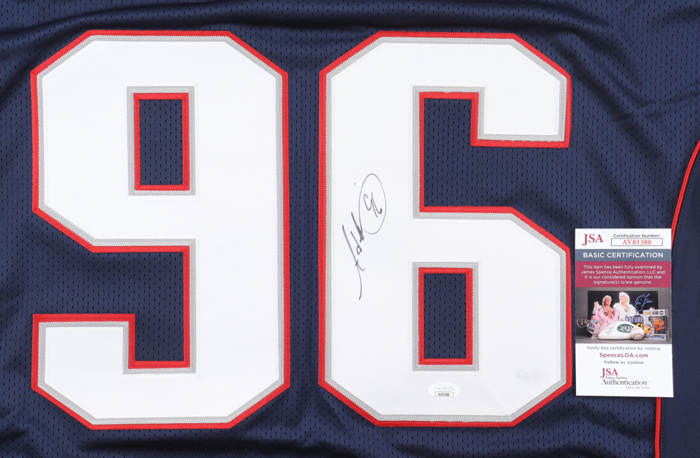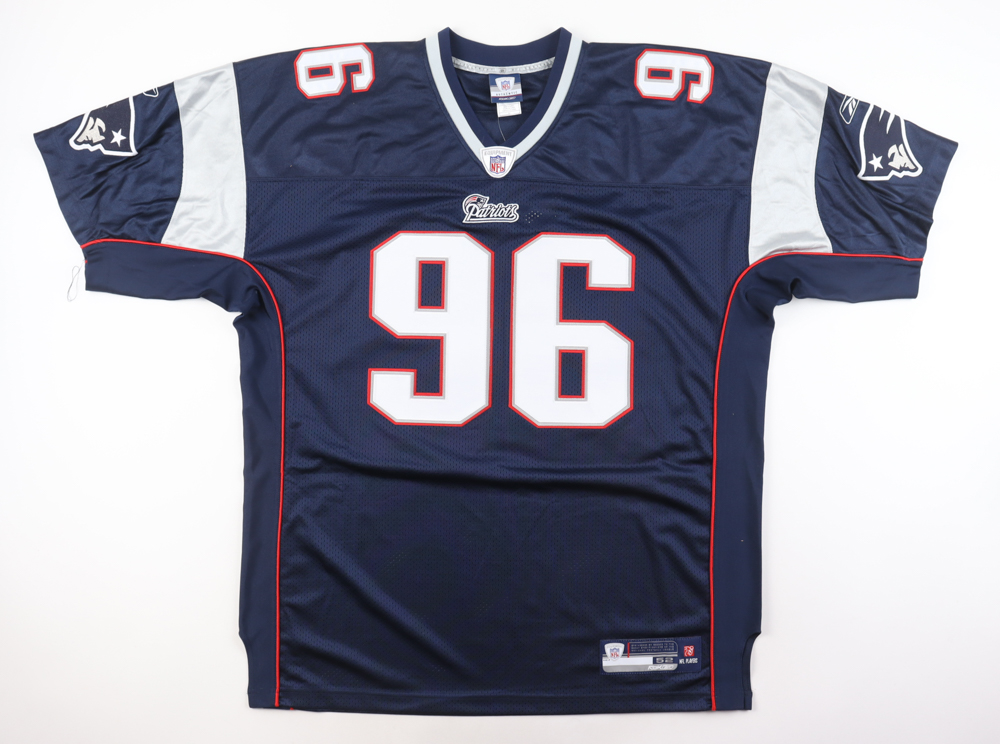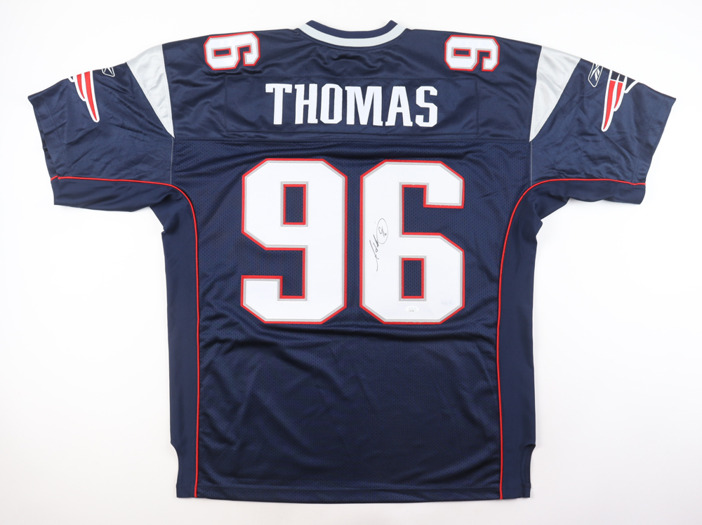Reebok jersey. Everything is sewn on, size 52. Has been hand-signed by Adalius Thomas (New England Patriots). Please note, there is a stain on the reverse number. Please refer to the photos for the condition of the item.
