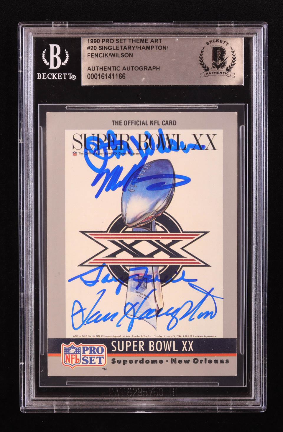 1990 Pro Set Theme Art #20 Super Bowl XX Signed by (4) with Mike Singletary, Dan Hampton, Gary Fencik & Otis Wilson (BGS)