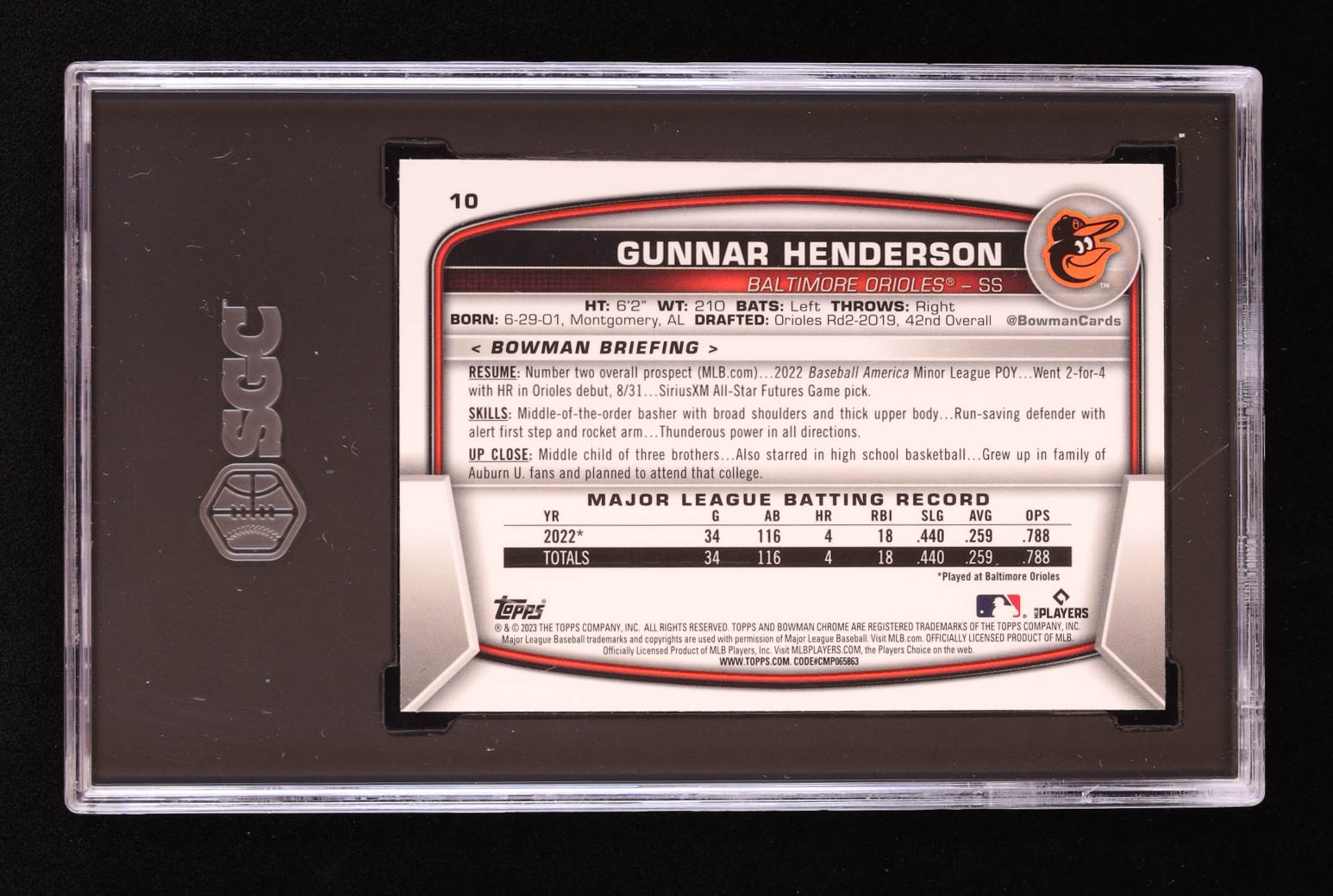 Gunnar Henderson 2023 Bowman Chrome #10 RC (SGC 10)
