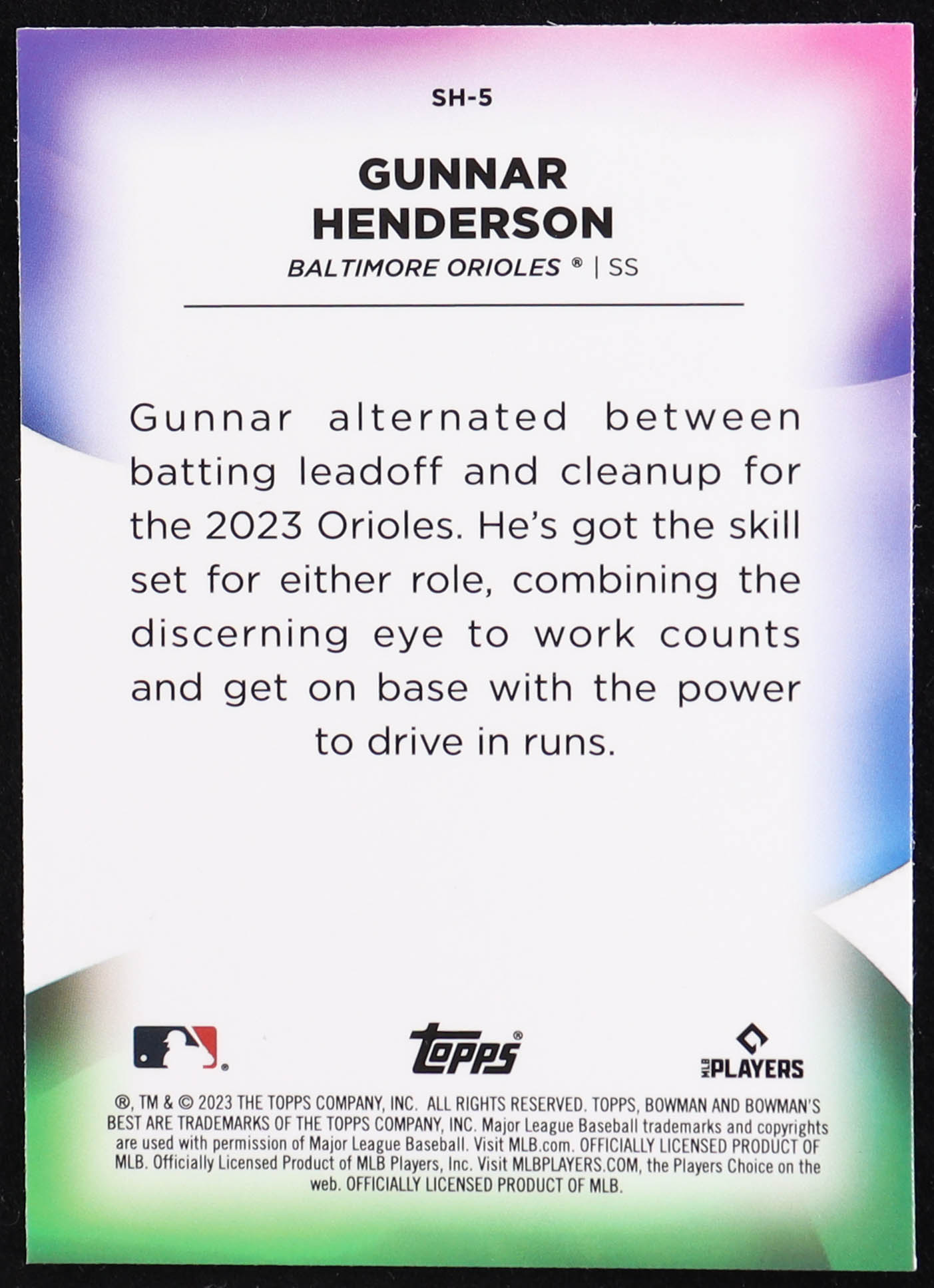 Gunnar Henderson 2023 Bowman's Best Shellacked Mini Diamond Refractors #SH5 RC