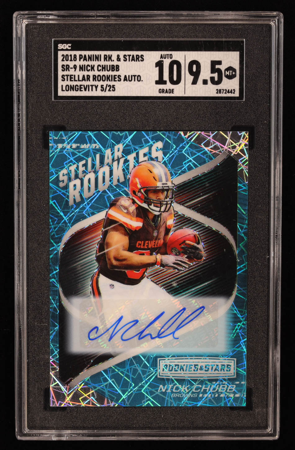 Nick Chubb 2018 Rookies and Stars Stellar Rookies Autographs #9 RC #05/25 (SGC 9.5 | Autograph Grade 10)