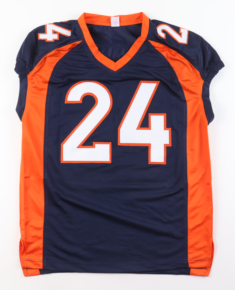 Custom jersey with everything sewn on, size XL. Hand-signed by Champ Bailey (HOF).