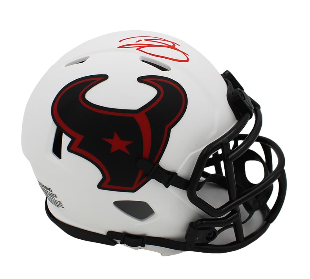 Riddell Houston Texans Lunar Eclipse Alternate Speed Mini Helmet has been hand-signed by Dalton Schultz.
