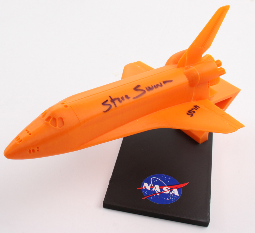 Replica 3D-Printed rocket with stand has been hand-signed and inscribed by Steve Swanson.