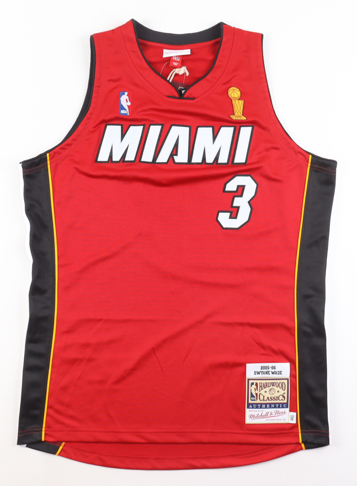 Mitchell & Ness jersey with everything sewn on, size 44. Hand-signed and inscribed by Dwyane Wade (Miami, Heat, HOF).
