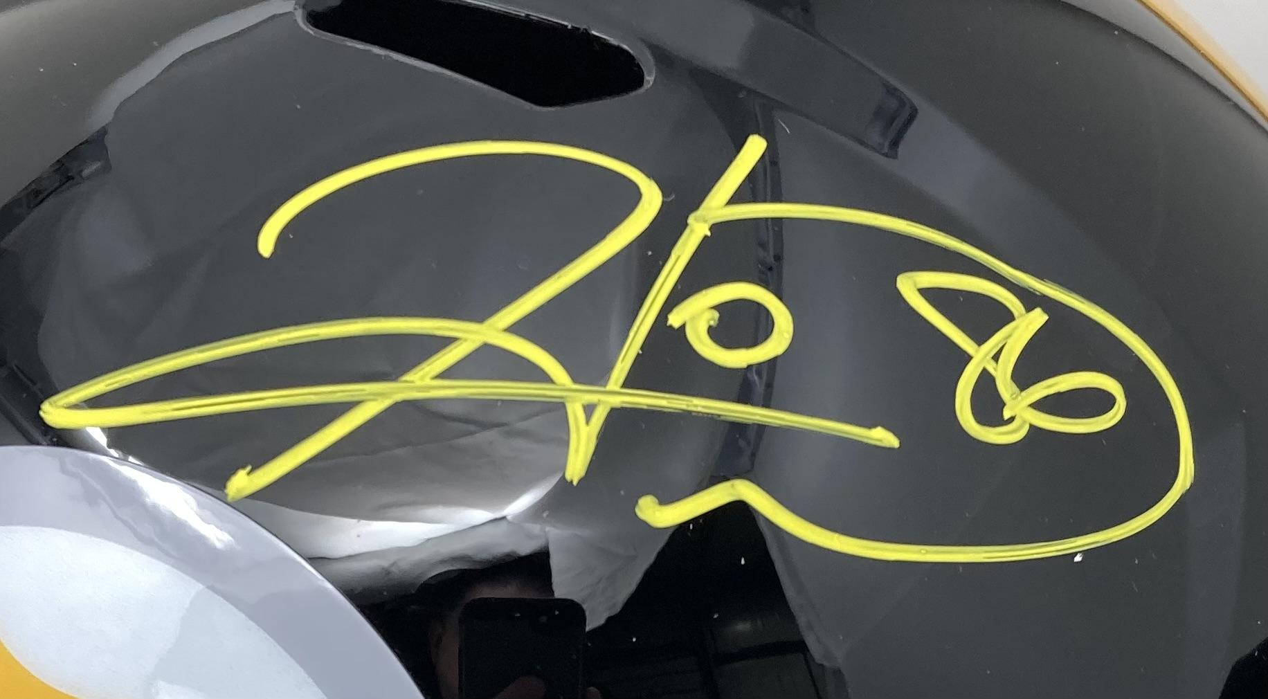 Riddell Pittsburgh Steelers full-size speed replica helmet. Hand-signed by Hines Ward.
