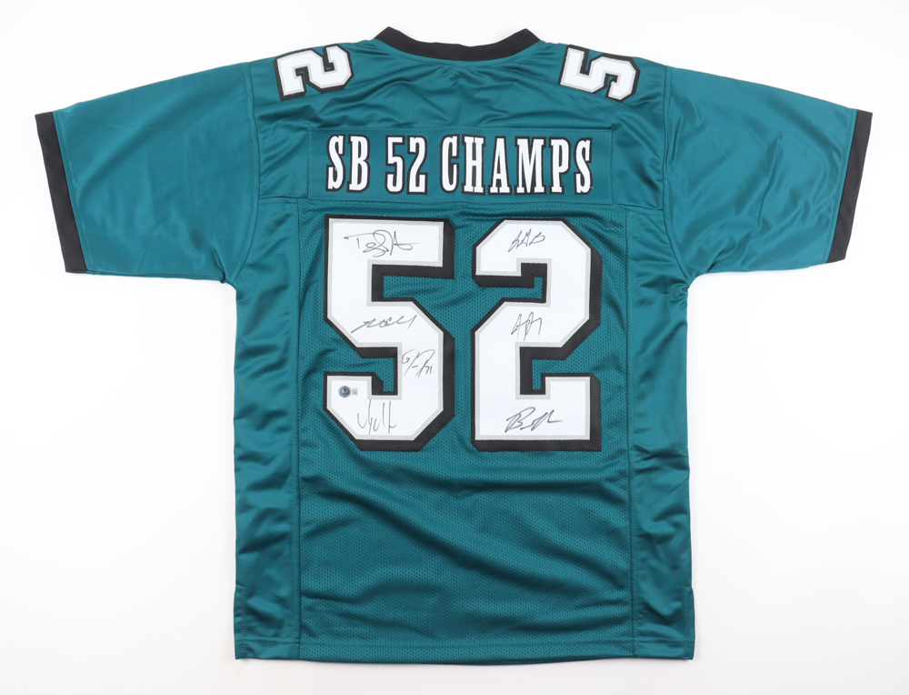 SB 52 Champs Jersey Signed by (7) with Doug Pederson, Jason Peters, Brandon Graham, Jay Ajayi (Beckett)