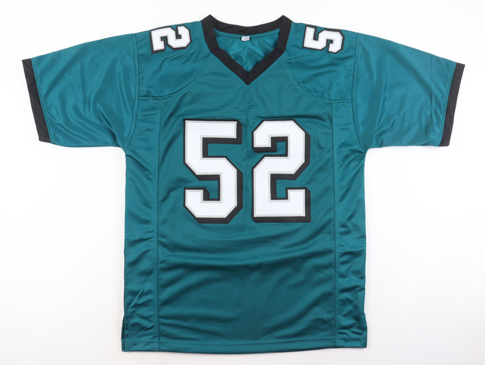 Custom football jersey. Everything is sewn on, size XL. Hand-signed by (7) with Doug Pederson, Jason Peters, Brandon Graham, Jay Ajayi, LeGarrette Blount, Brent Celek and Mychal Kendricks.