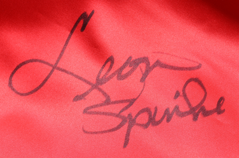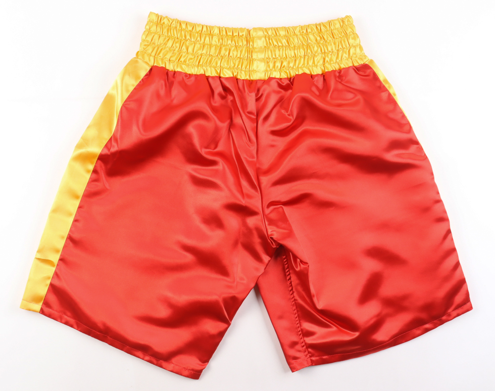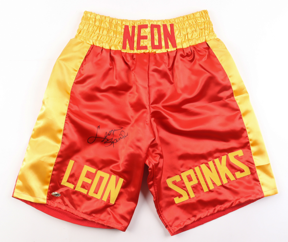 Custom boxing trunks, size L. Hand-signed by Michael "Jinx" Spinks (HOF).