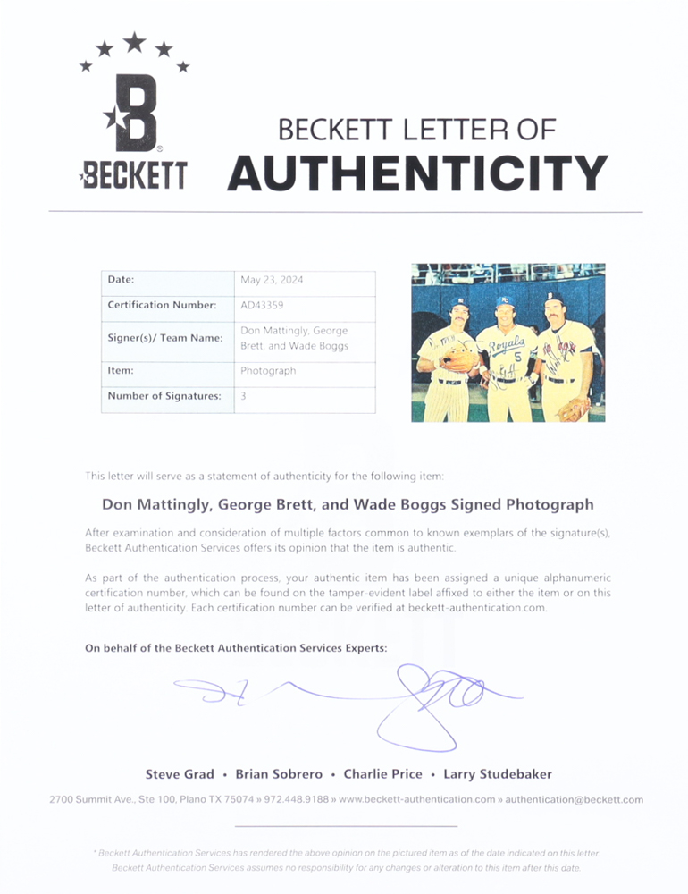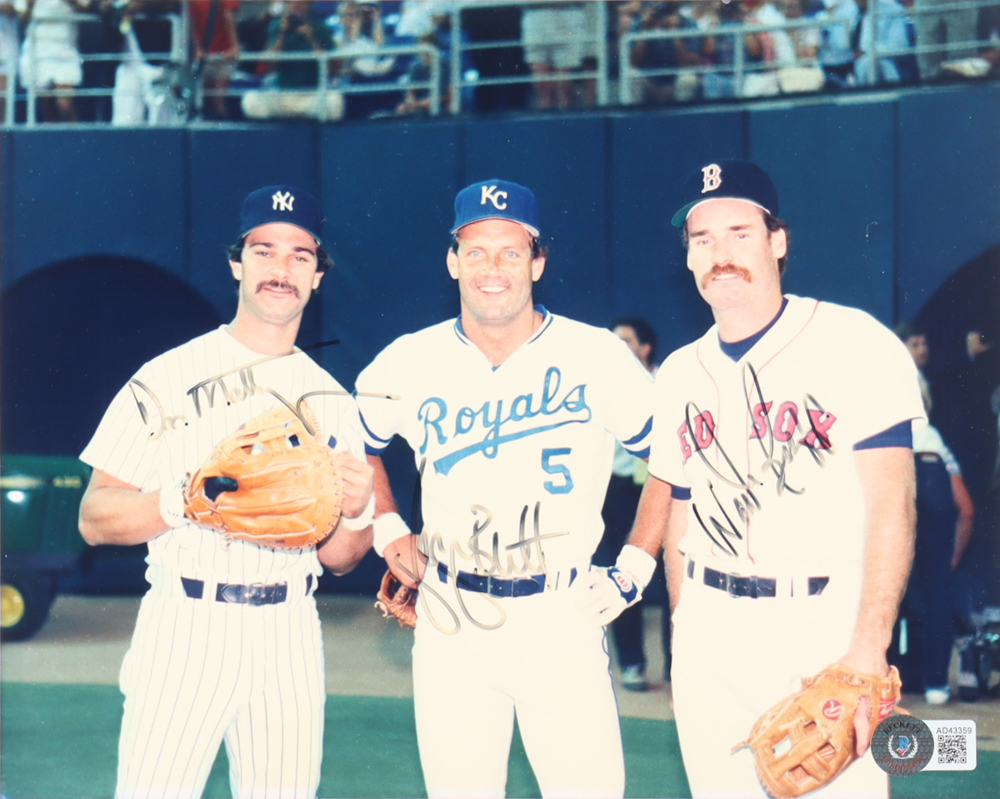 George Brett, Wade Boggs, & Don Mattingly Signed 8x10 Photo (Beckett)