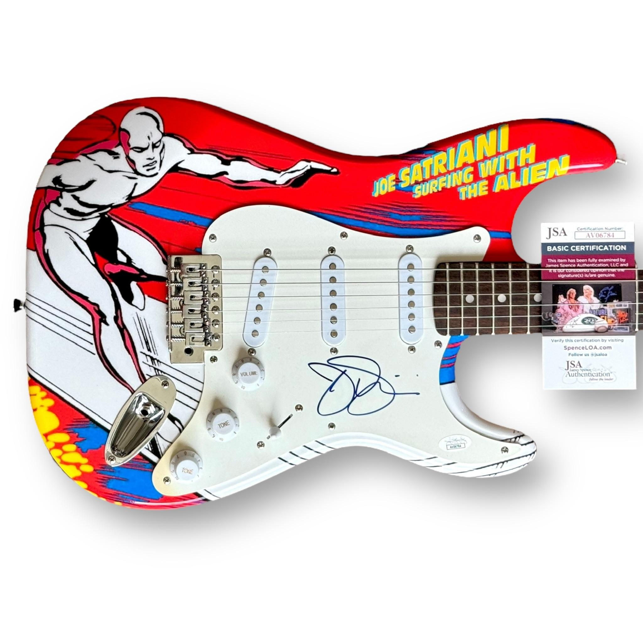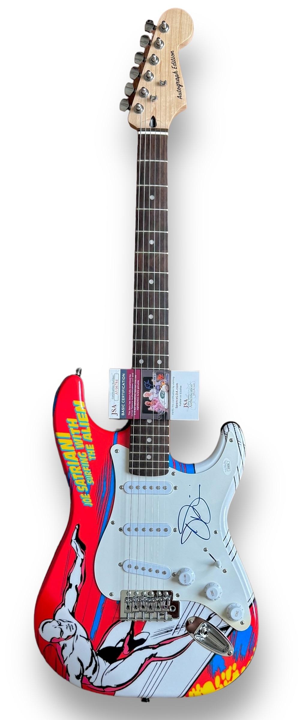 Custom Autograph Edition Stratocaster electric guitar measures approximately 39" in length and has been hand-signed on the pickguard by Joe Satriani.