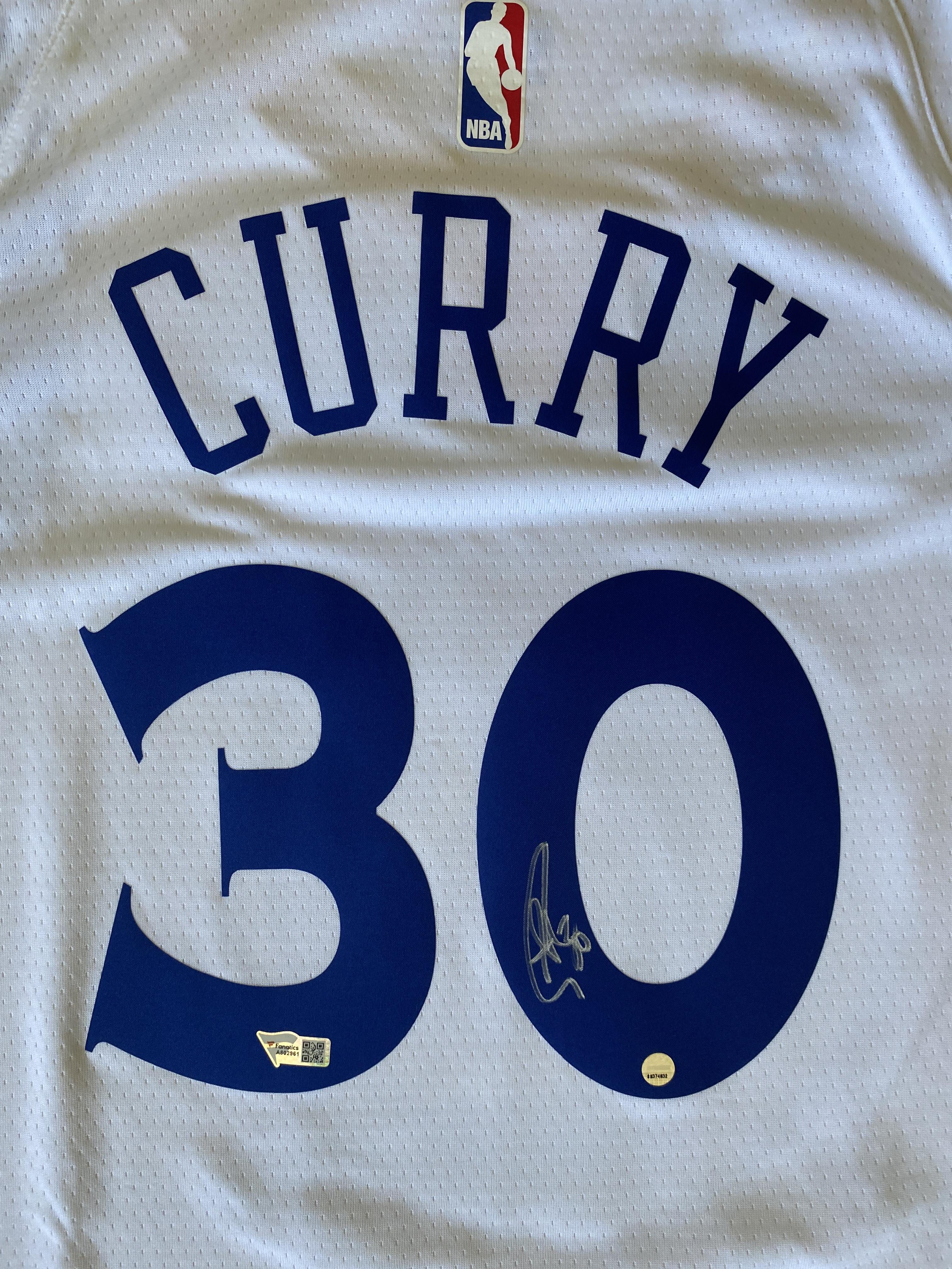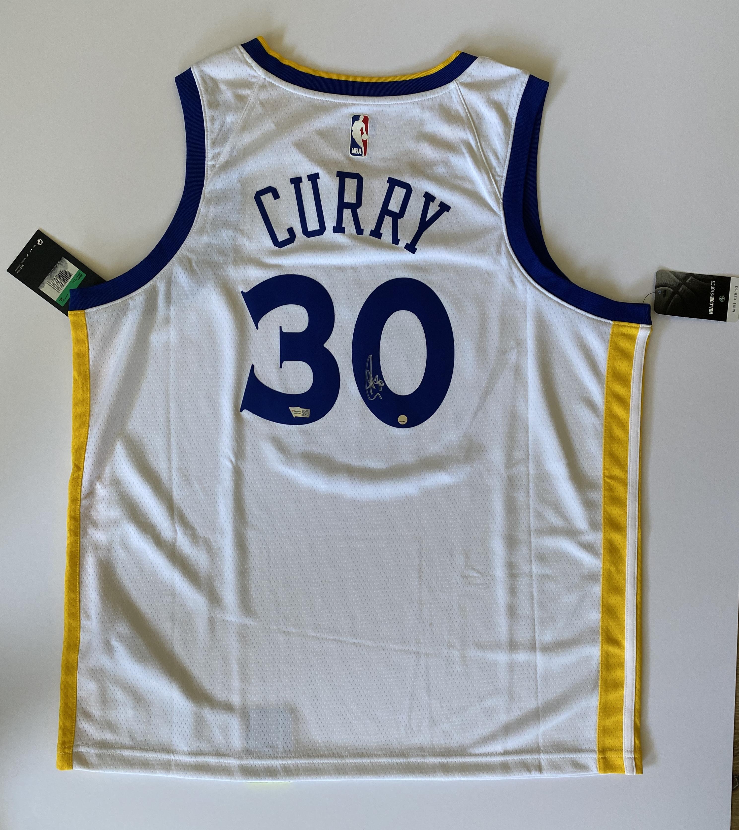 Nike style jersey with everything pressed on, size XL. Hand-signed by Stephen Curry (Golden State Warriors).