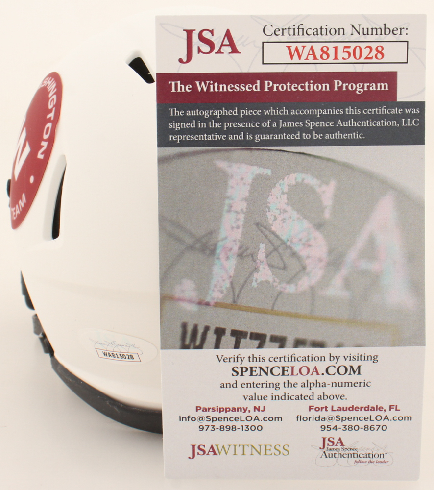 Riddell Washington Football Team lunar eclipse alternate speed mini helmet. Hand-signed and inscribed by Joe Theismann (HOF).