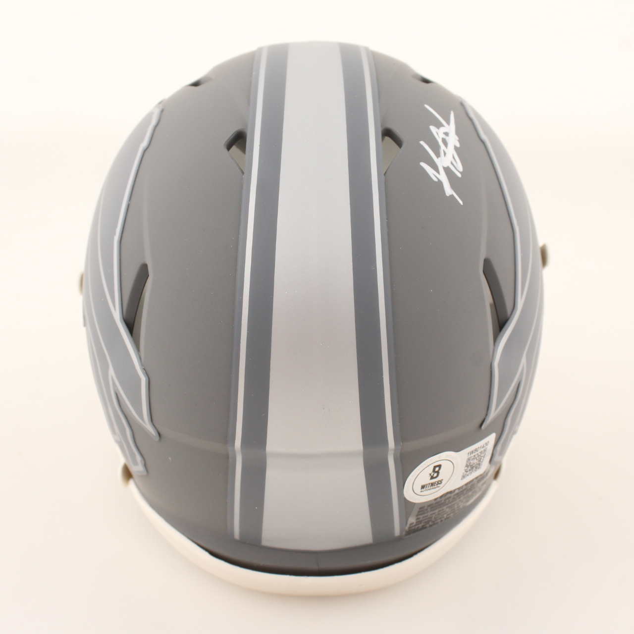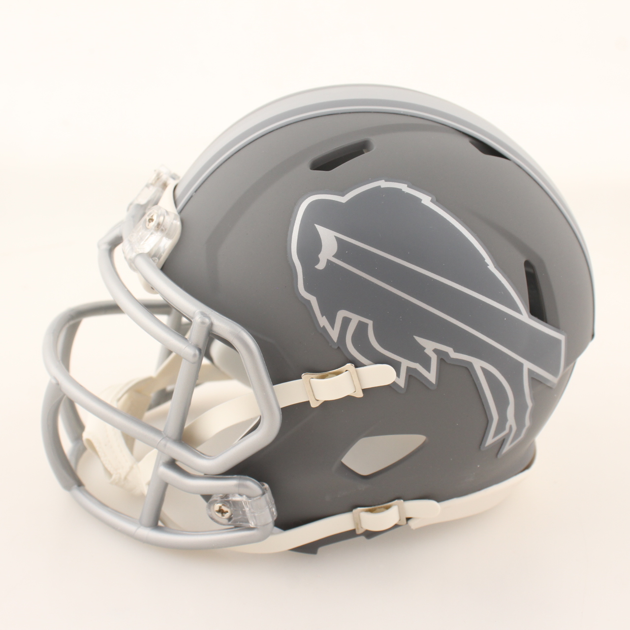 Riddell Buffalo Bills Slate Alternate Speed mini helmet. Hand-signed by Keon Coleman.