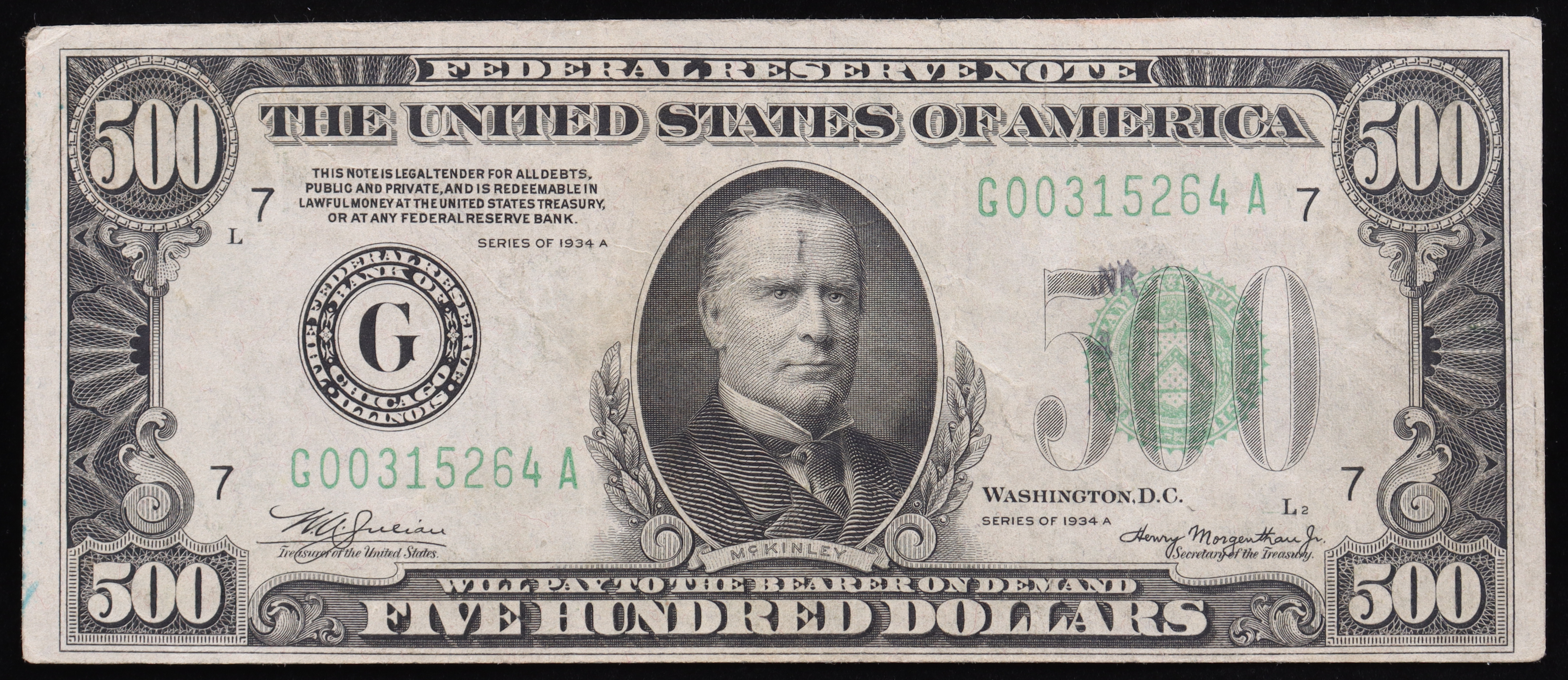 1934 $500 Five Hundred Dollars Federal Reserve Note
