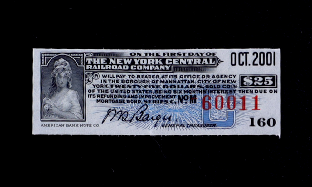 2001 October NY Central Railroad Co Bond Coupon