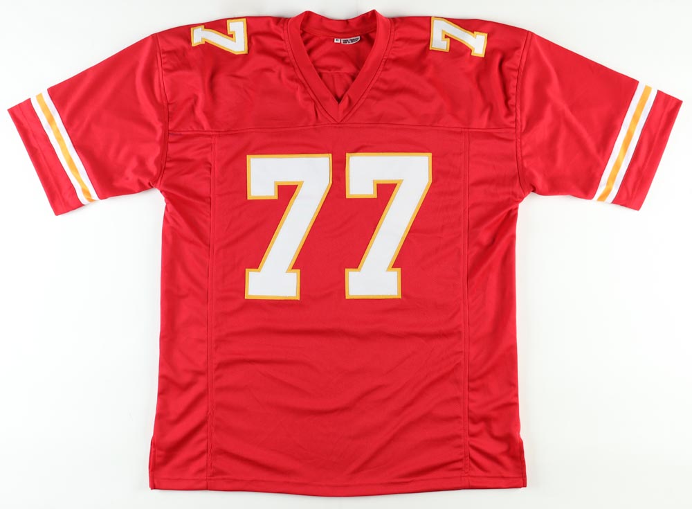 Custom jersey. Everything sewn on, size XL. Hand-signed by Willie Roaf (HOF).