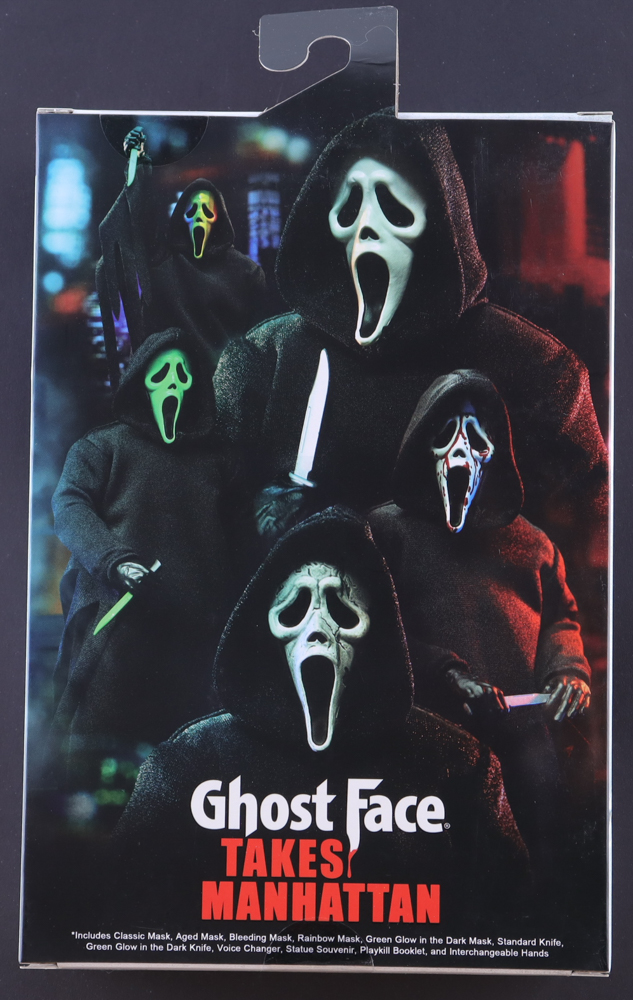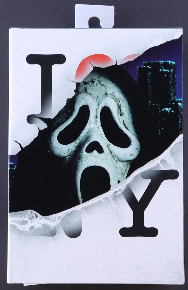 Action figure stands approximately 8" tall. Comes in original packaging that has been hand-signed and inscribed by Neve Campbell, Skeet Ulrich, Matthew Lillard, Dermot Mulroney. Please see photos regarding the condition of the packaging and the signatures.