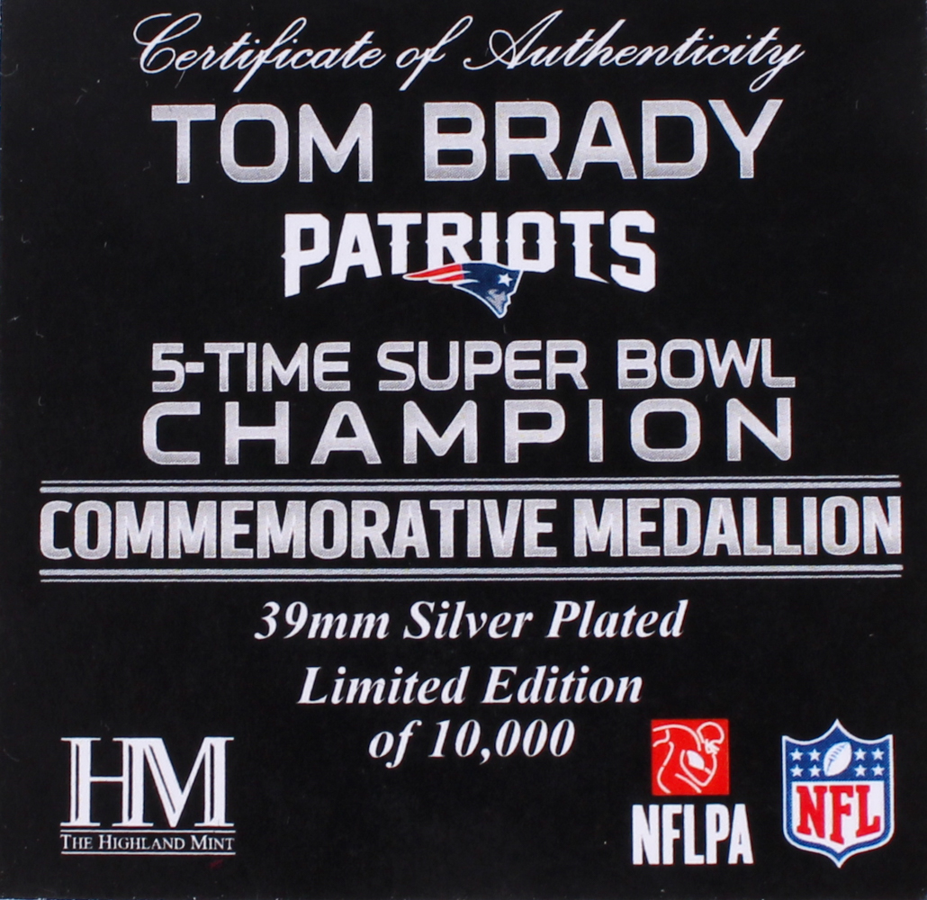 Tom Brady 5-Time Super Bowl Champions Silver Commemorative Coin from Highland Mint