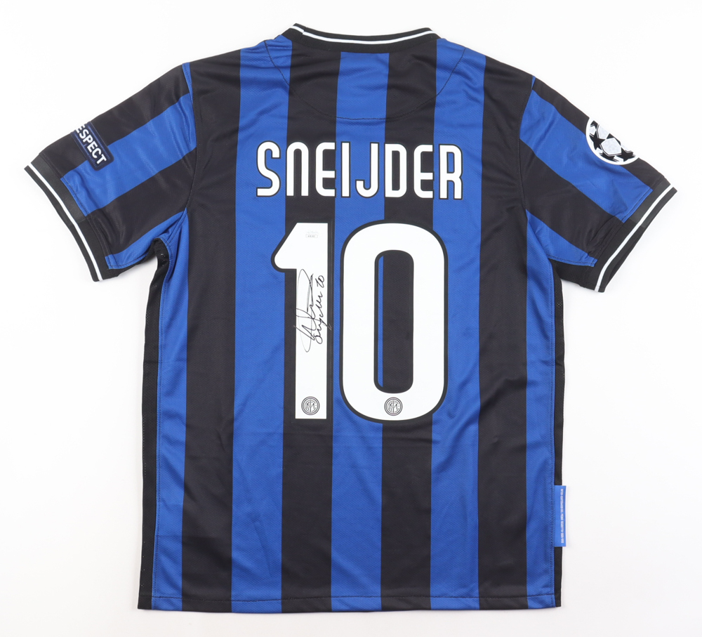 Nike jersey with everything printed on, size M. Hand-signed by Wesley Sneijder.
