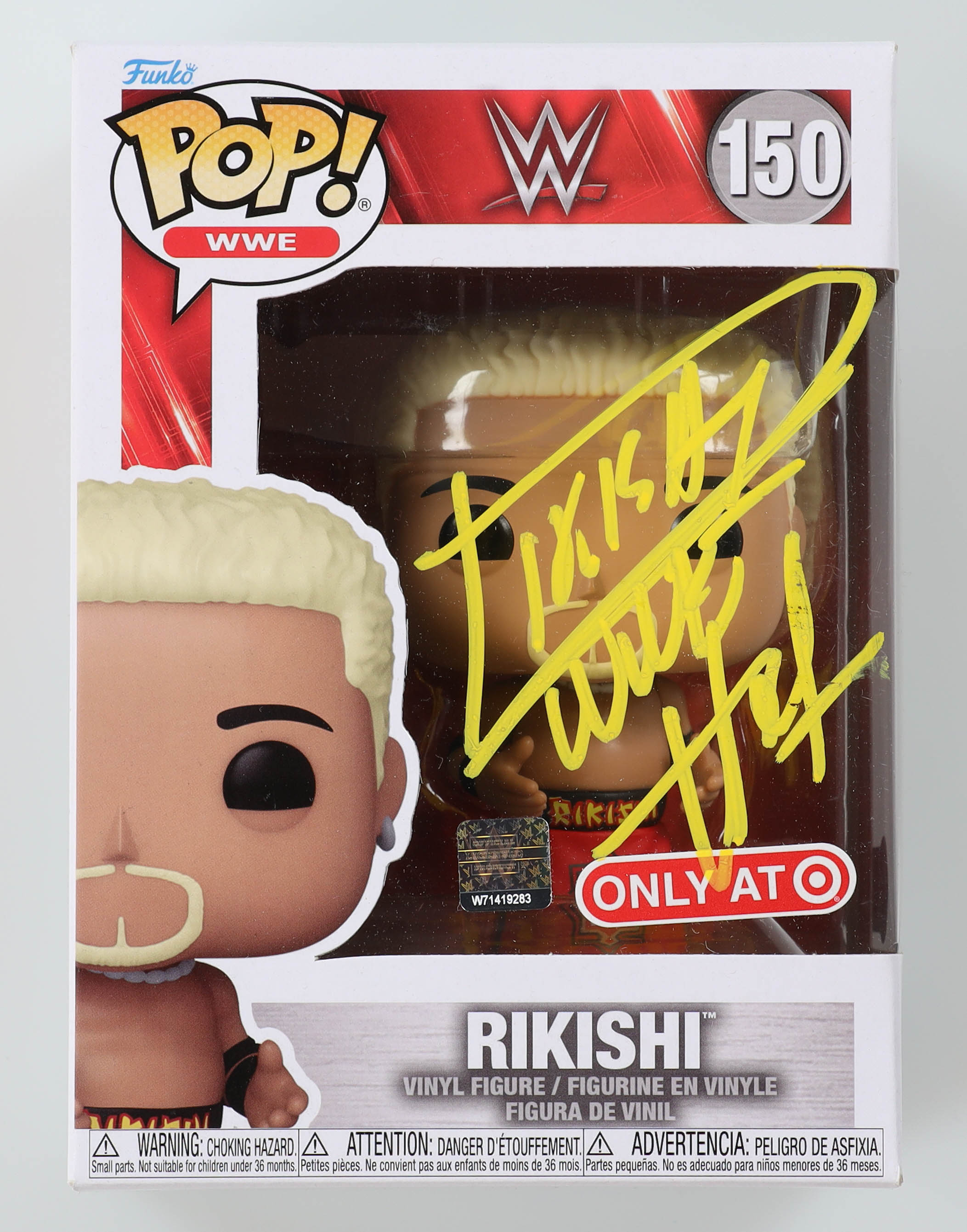 Funko Pop! figure measures approximately 4" tall. Hand-signed and inscribed on the packaging by Rikishi (HOF).